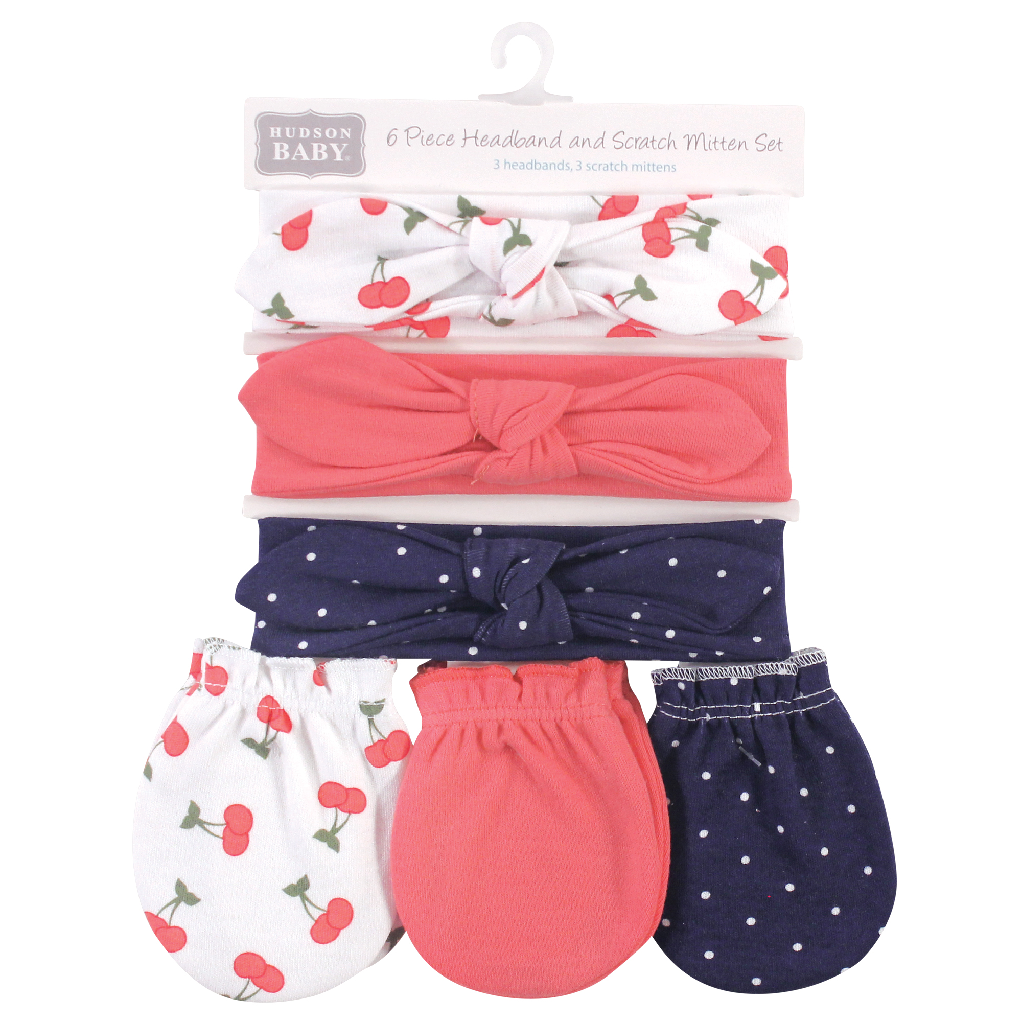Hudson Baby Cotton Headband and Scratch Mitten Set, Cherries