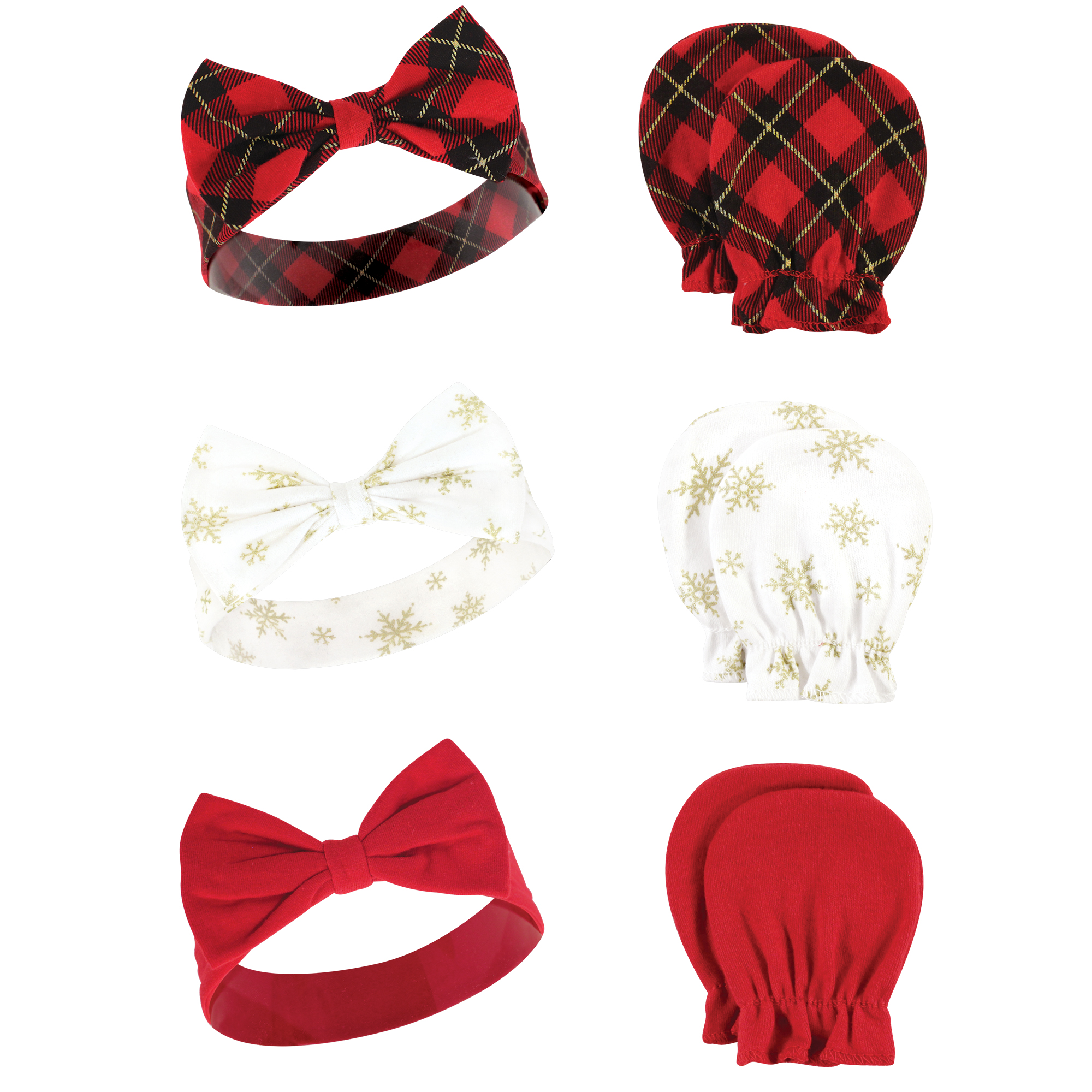 - Set includes coordinating headbands and scratch mittens