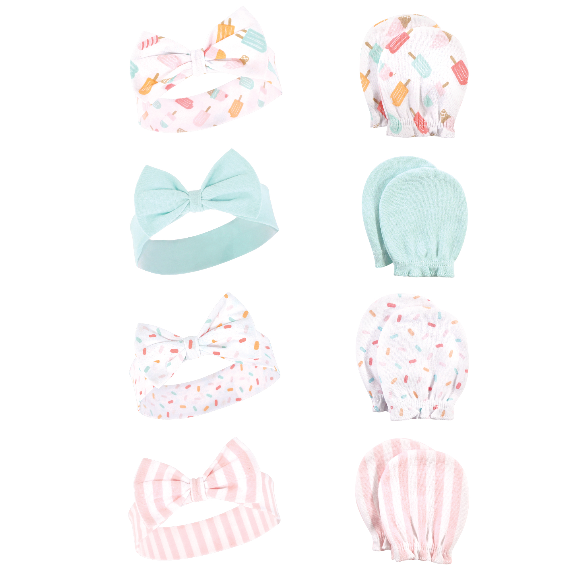 Hudson Baby Cotton Headband and Scratch Mitten Set, Ice Cream