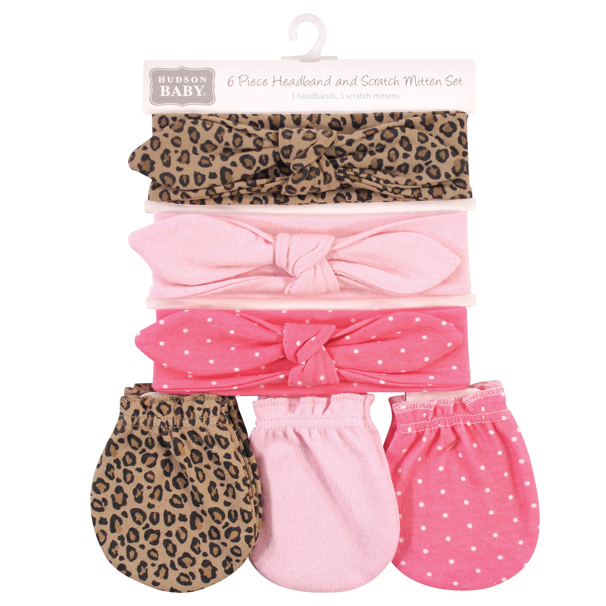 Hudson Baby headband and scratch mitten set is a perfect accessory set for your little girl. Each set comes with coordinating headbands and scratch mittens. Our headbands are a fun headwrap for your baby girl to look stylish with our adorable prints. Our scratch mittens are made with super soft cotton fabric and an elastic band around the wrist so the mittens stay on and protect your little one's face and body from any accidental scratches.