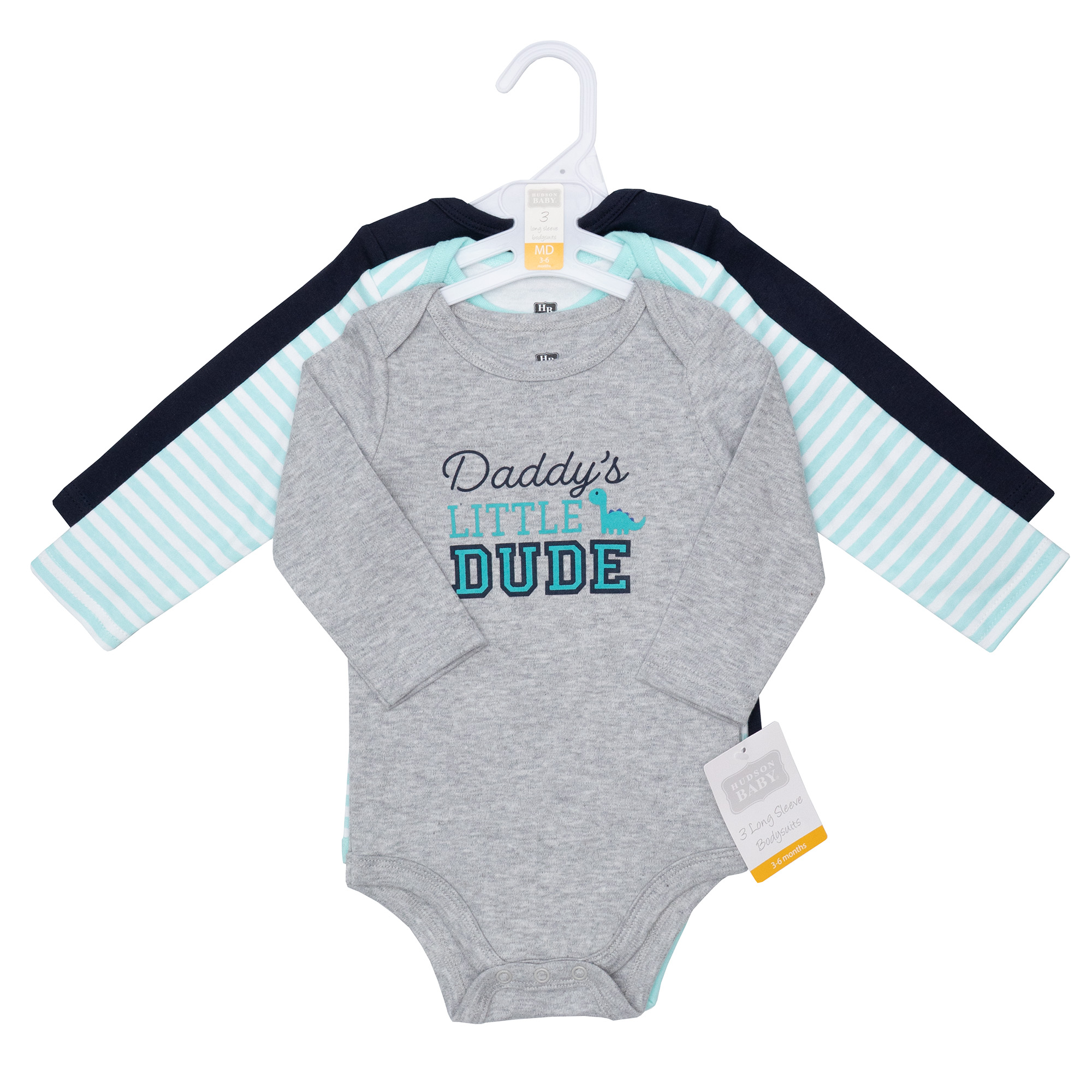 Hudson Baby long-sleeve bodysuits are an essential part of baby's wardrobe. Our bodysuits feature adorable prints, embroideries, stripes and solids and provide a comfortable base layer that's great for pairing with pants, shorts, or even wearing under outfits. Our bodysuits are comfortable and cozy for all-day, everyday wear for your little one.