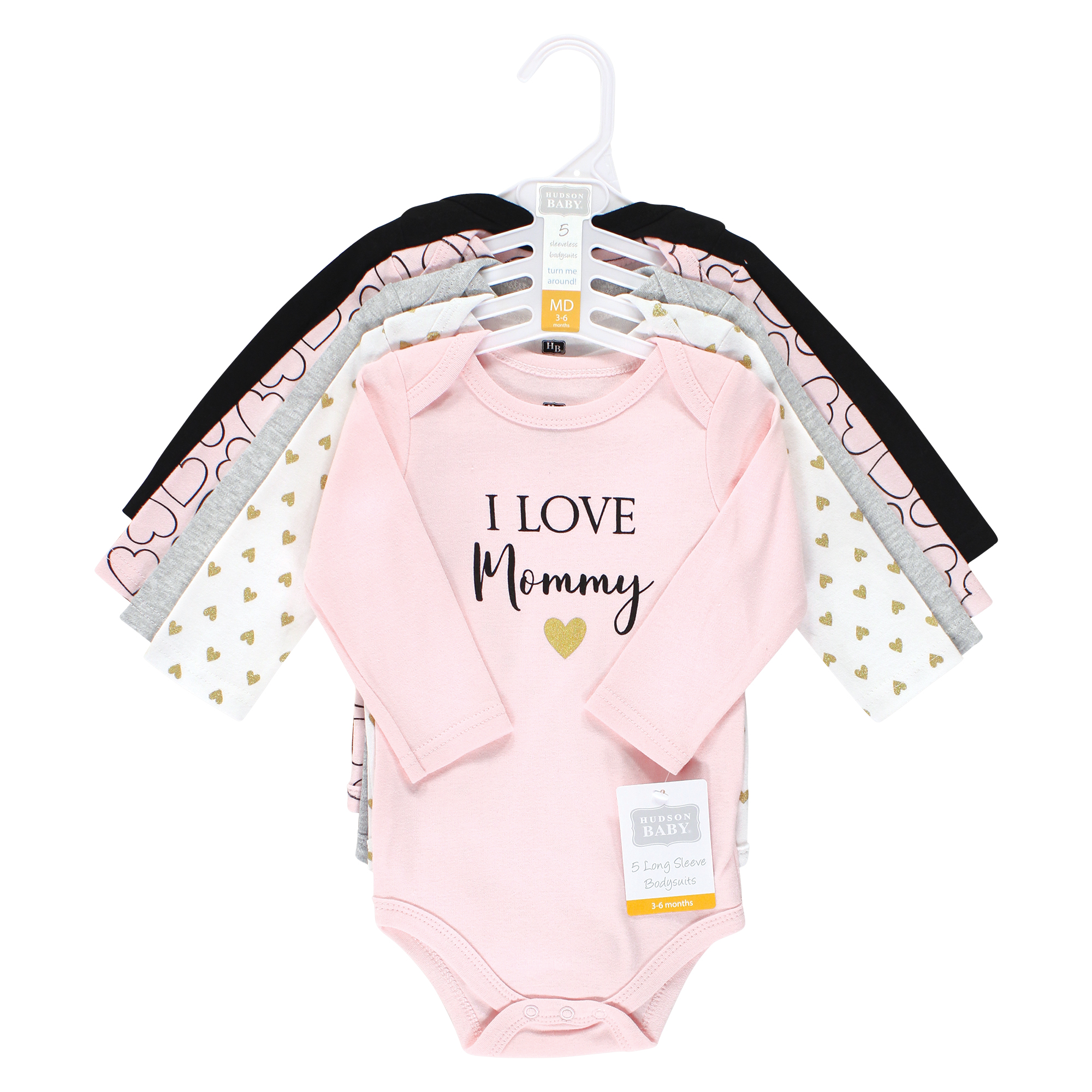 Hudson Baby Cotton Long-Sleeve Bodysuits 5-Pack, Girl Mommy