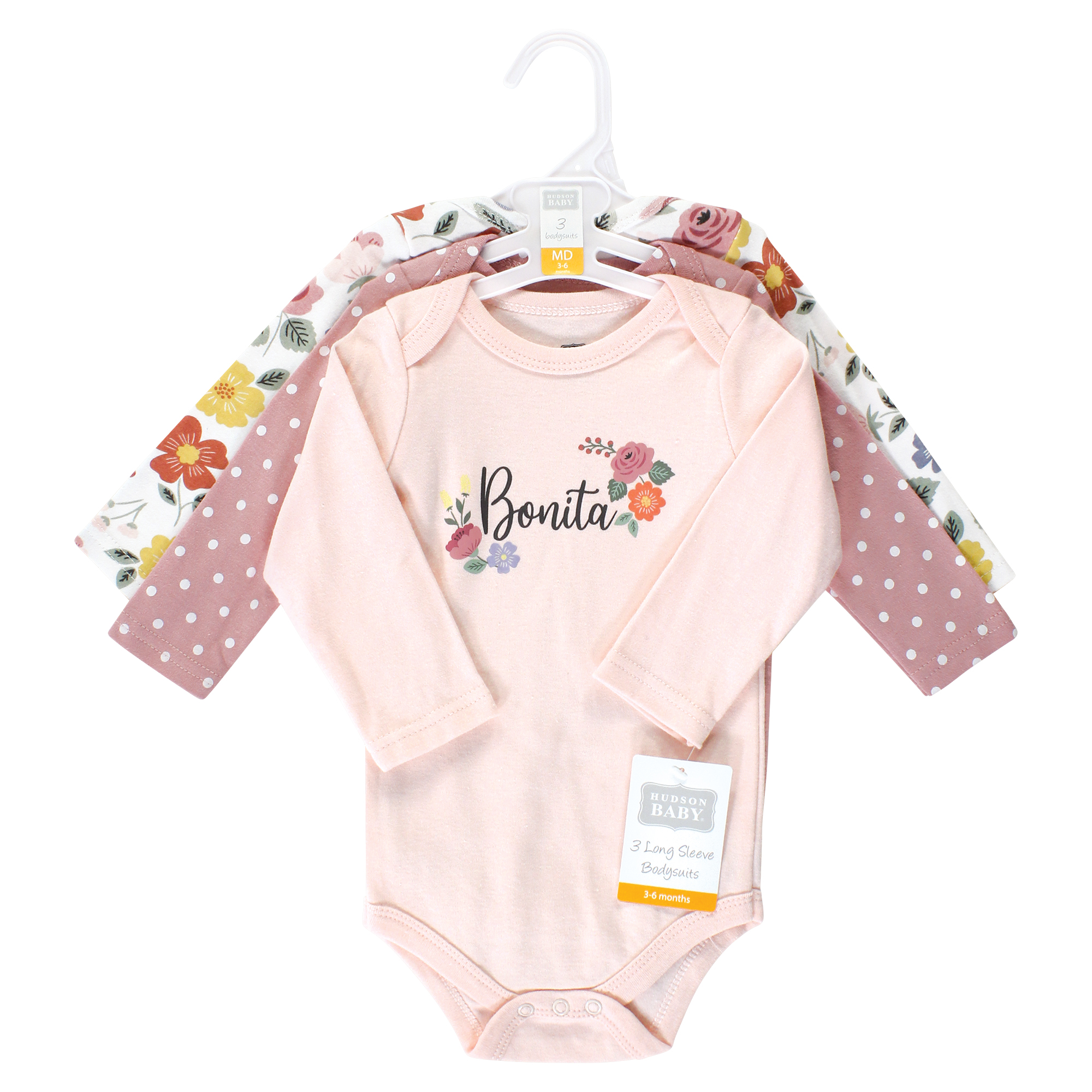 Hudson Baby Cotton Long-Sleeve Bodysuits, Bonita 3 Pack