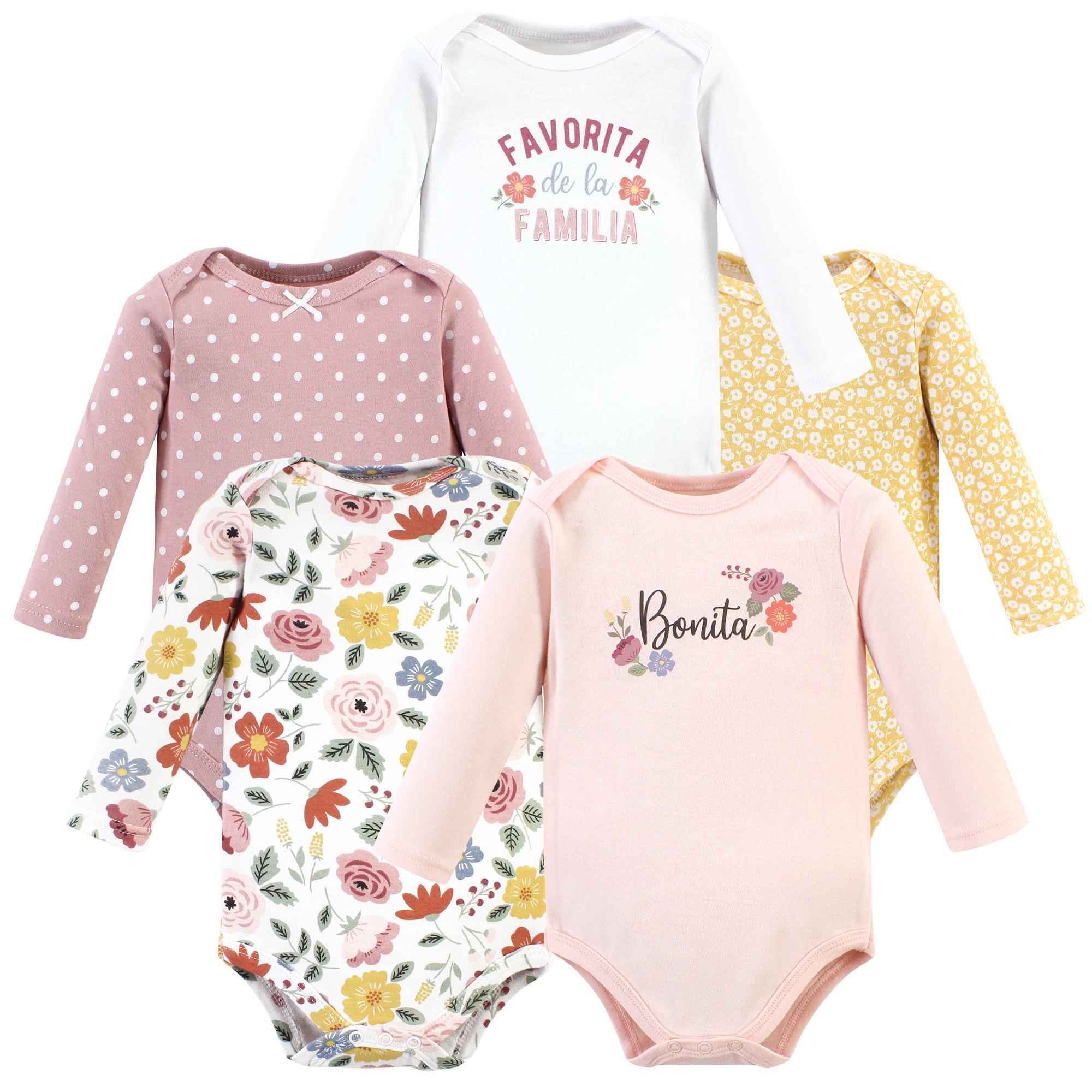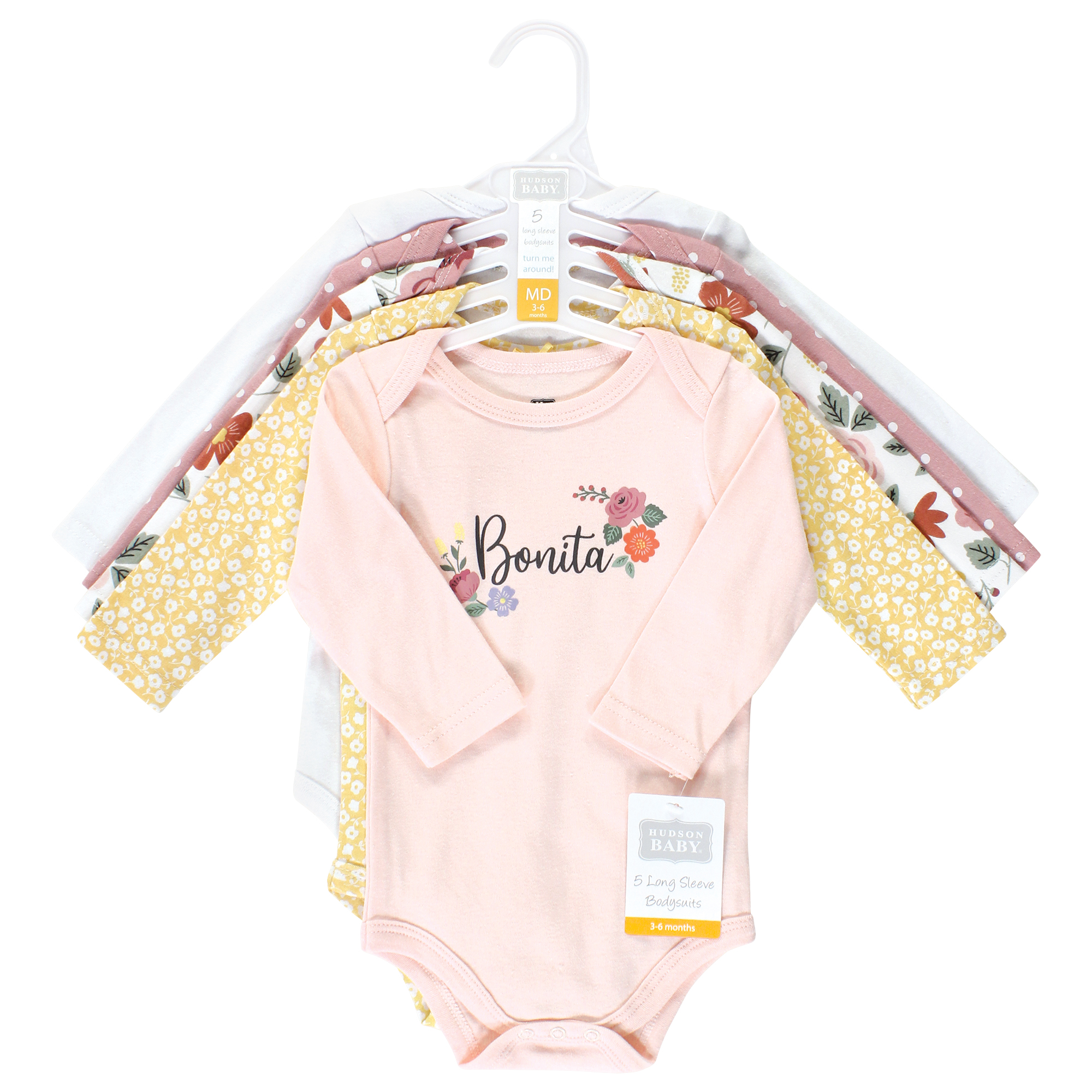Hudson Baby Cotton Long-Sleeve Bodysuits, Bonita 5 Pack