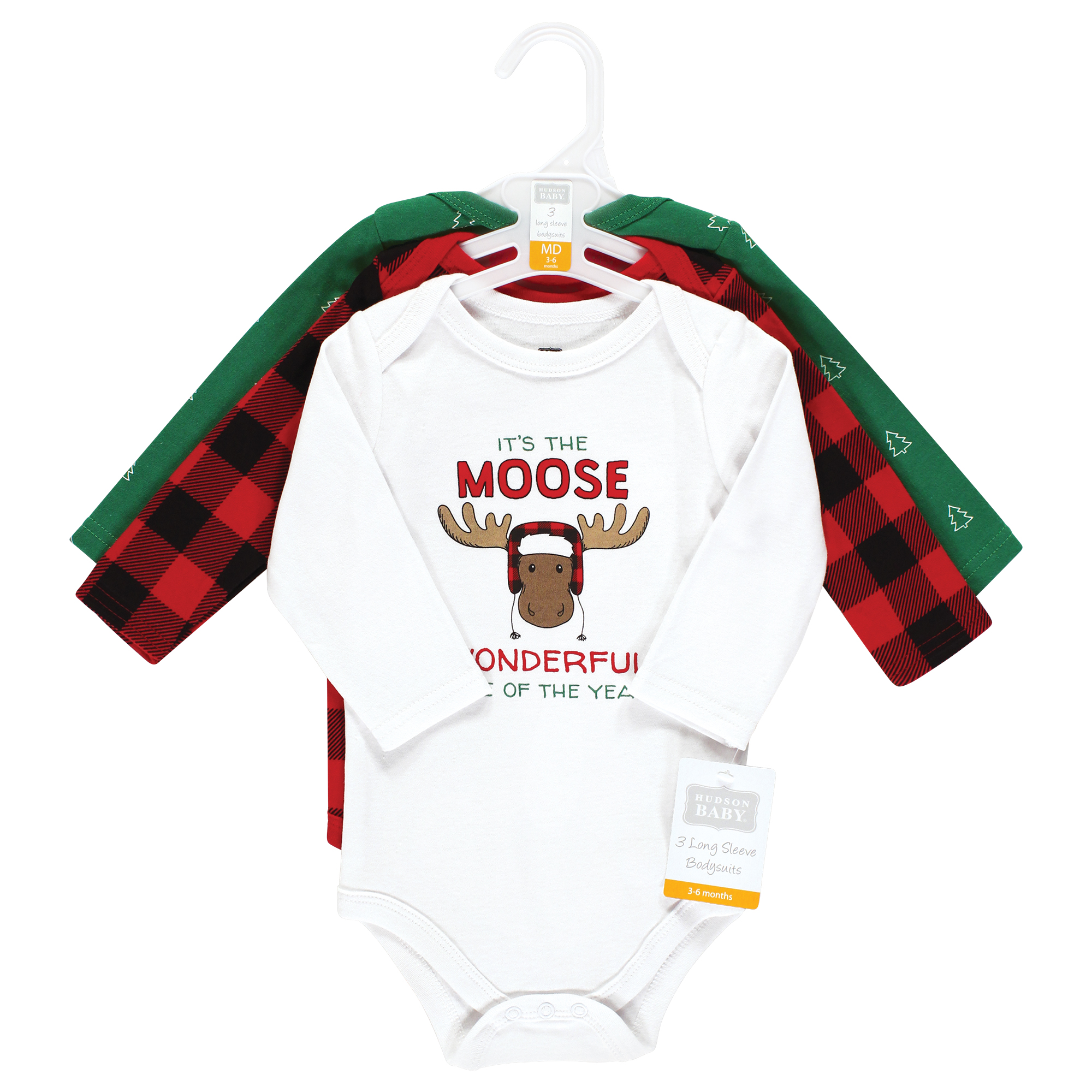 Hudson Baby Cotton Long-Sleeve Bodysuits, Buffalo Christmoose