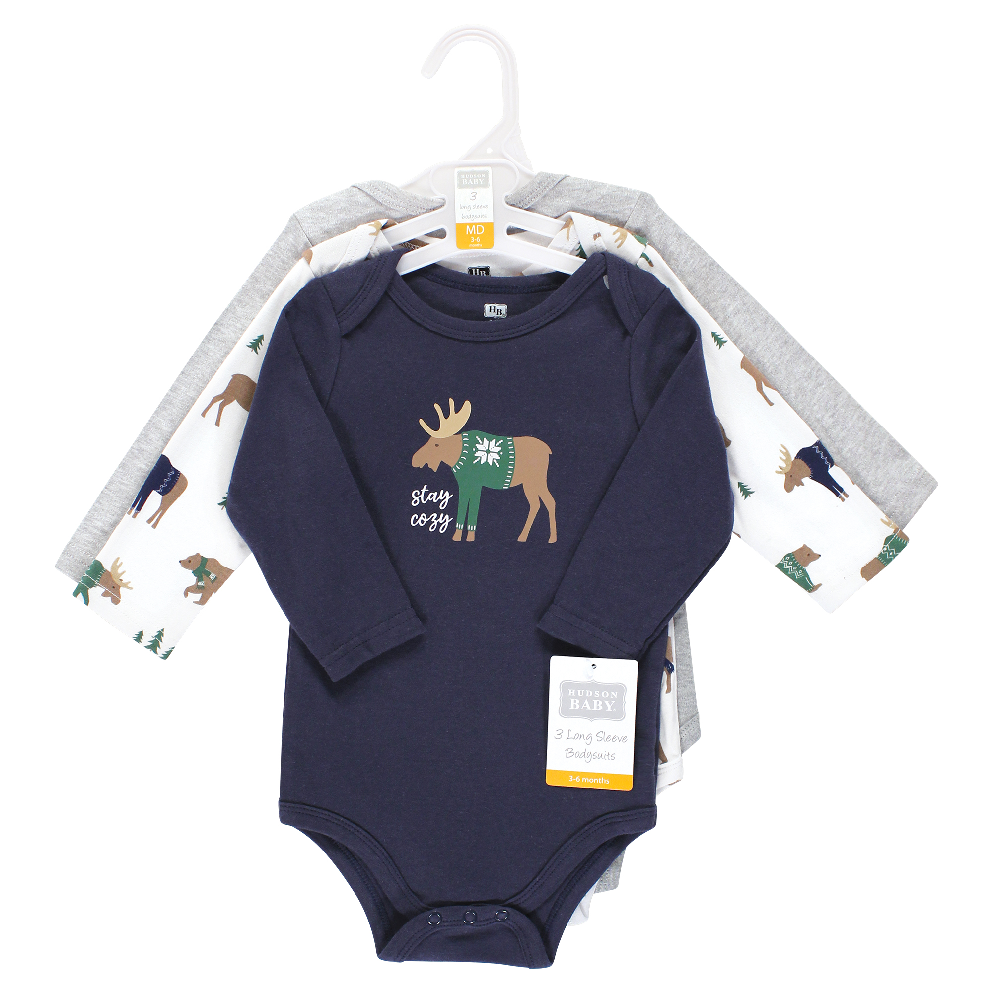 Hudson Baby Cotton Long-Sleeve Bodysuits, Moose Bear Sweater
