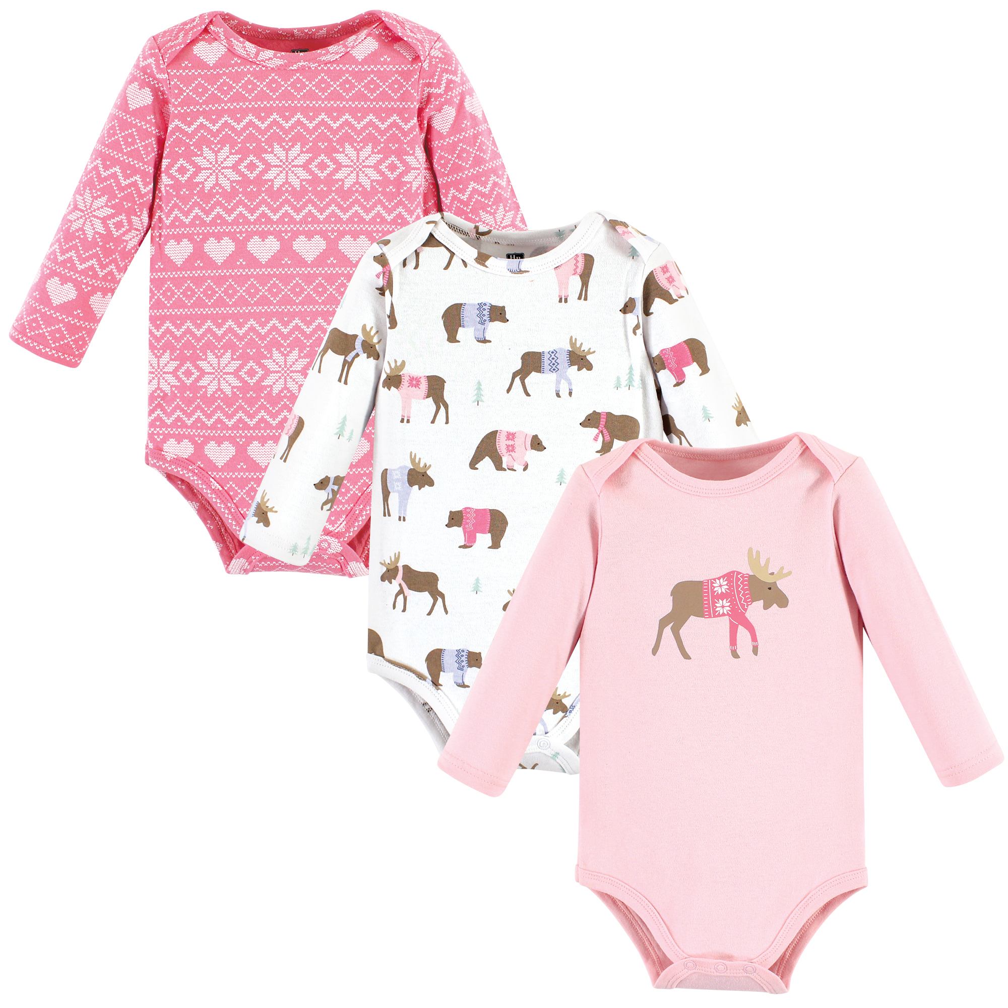 Hudson Baby Cotton Long-Sleeve Bodysuits, Pink Moose Bear