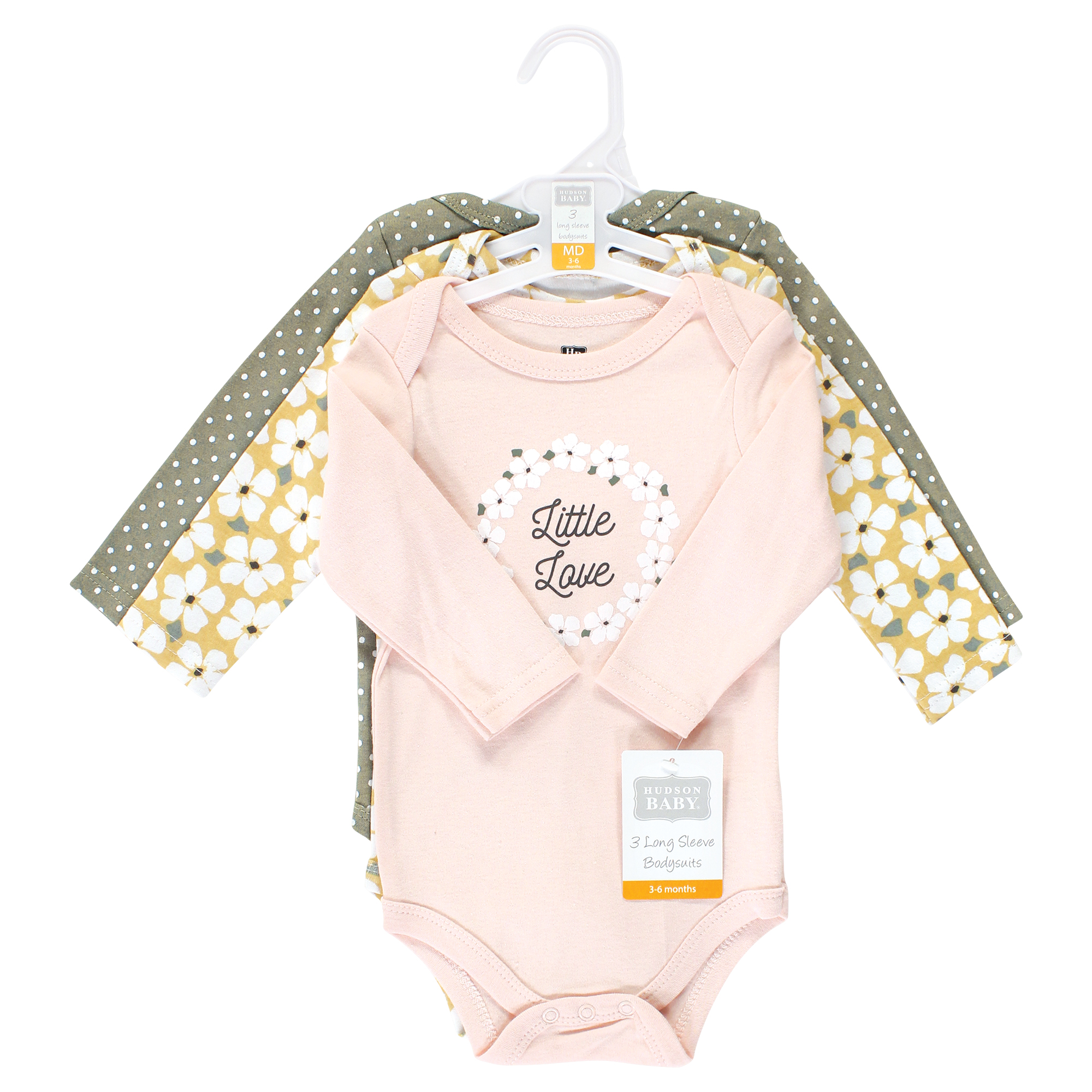 Hudson Baby Cotton Long-Sleeve Bodysuits, Sage Floral Wreath 3 Pack