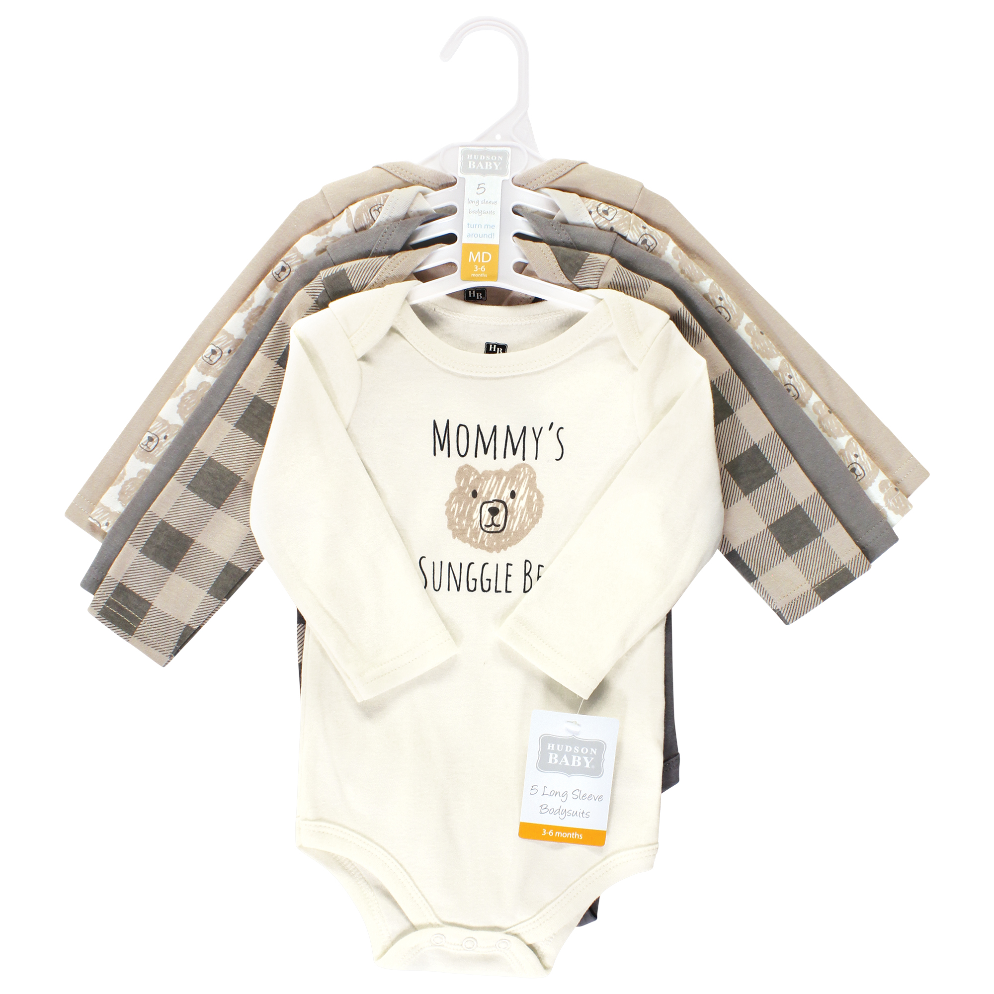 Hudson Baby Cotton Long-Sleeve Bodysuits, Snuggle Bear 5 Pack