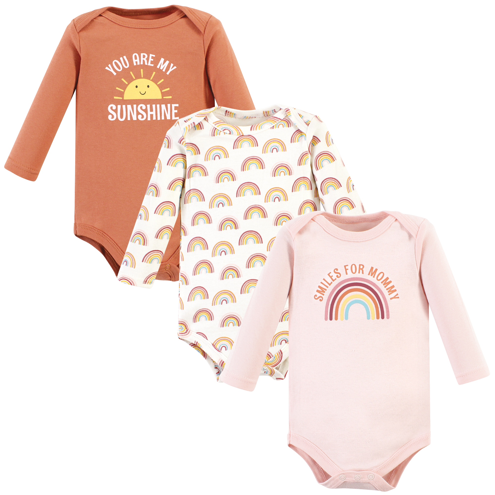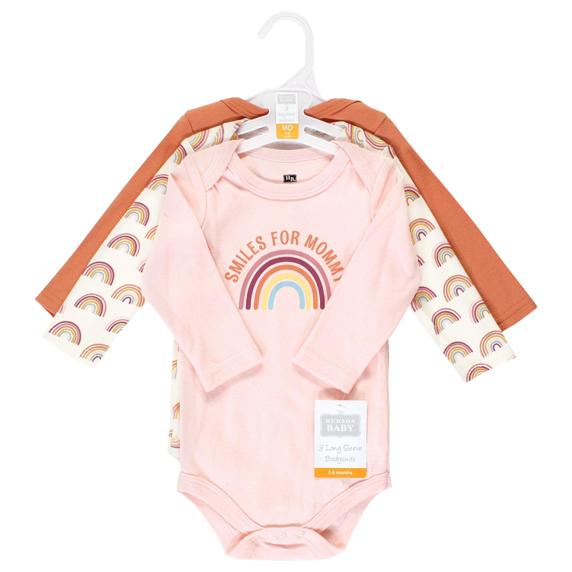 Hudson Baby Cotton Long-Sleeve Bodysuits 3-Pack, Sunshine Rainbows
