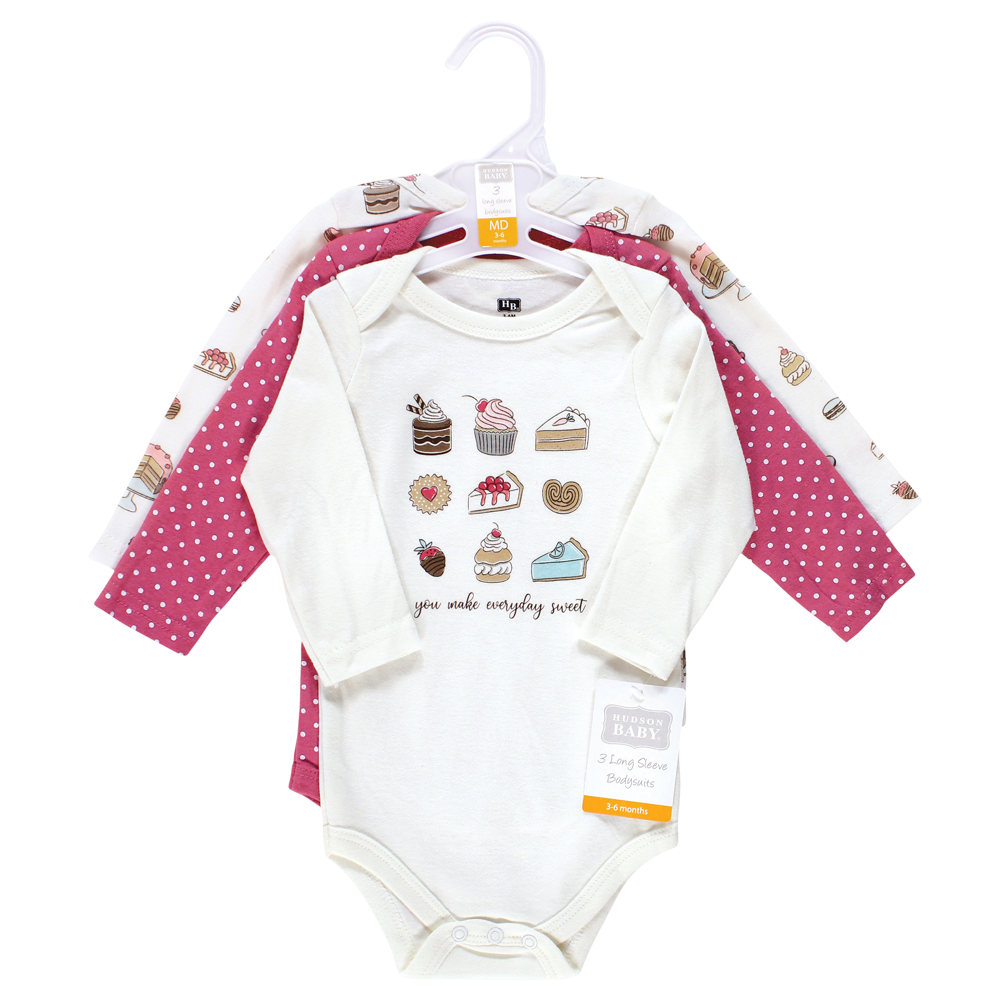 Hudson Baby Cotton Long-Sleeve Bodysuits, Sweet Bakery 3-Pack
