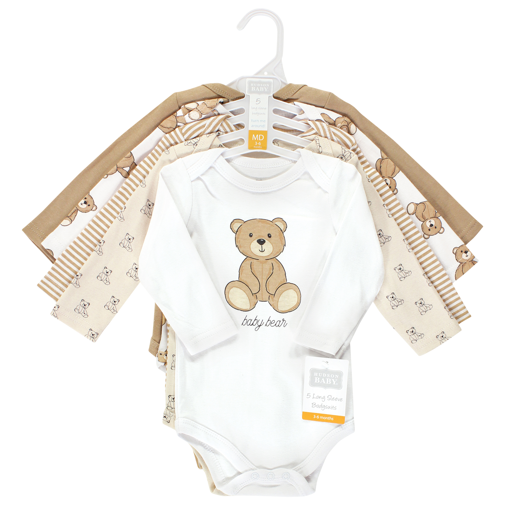 Hudson Baby Cotton Long-Sleeve Bodysuits, Teddy Bears 5-Pack