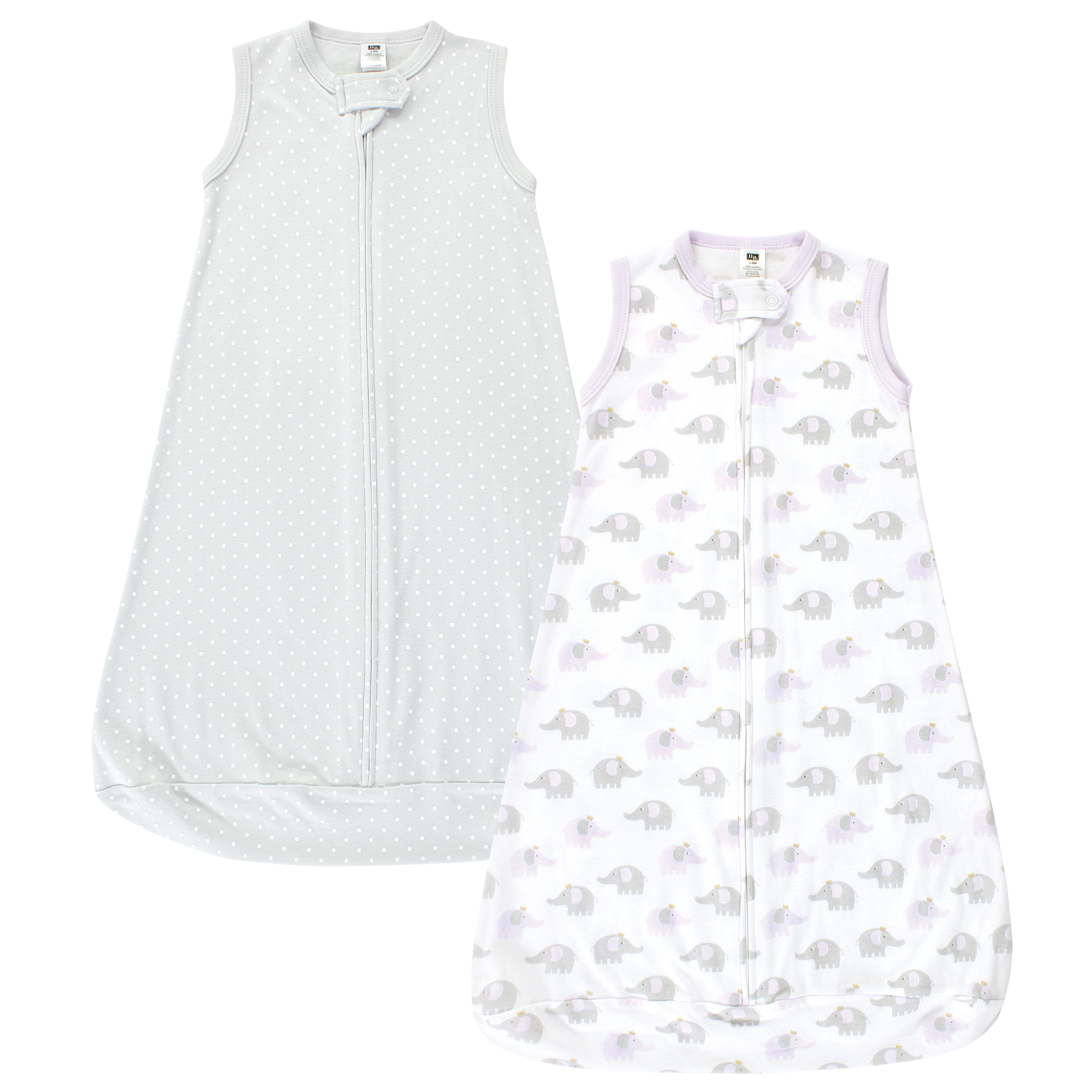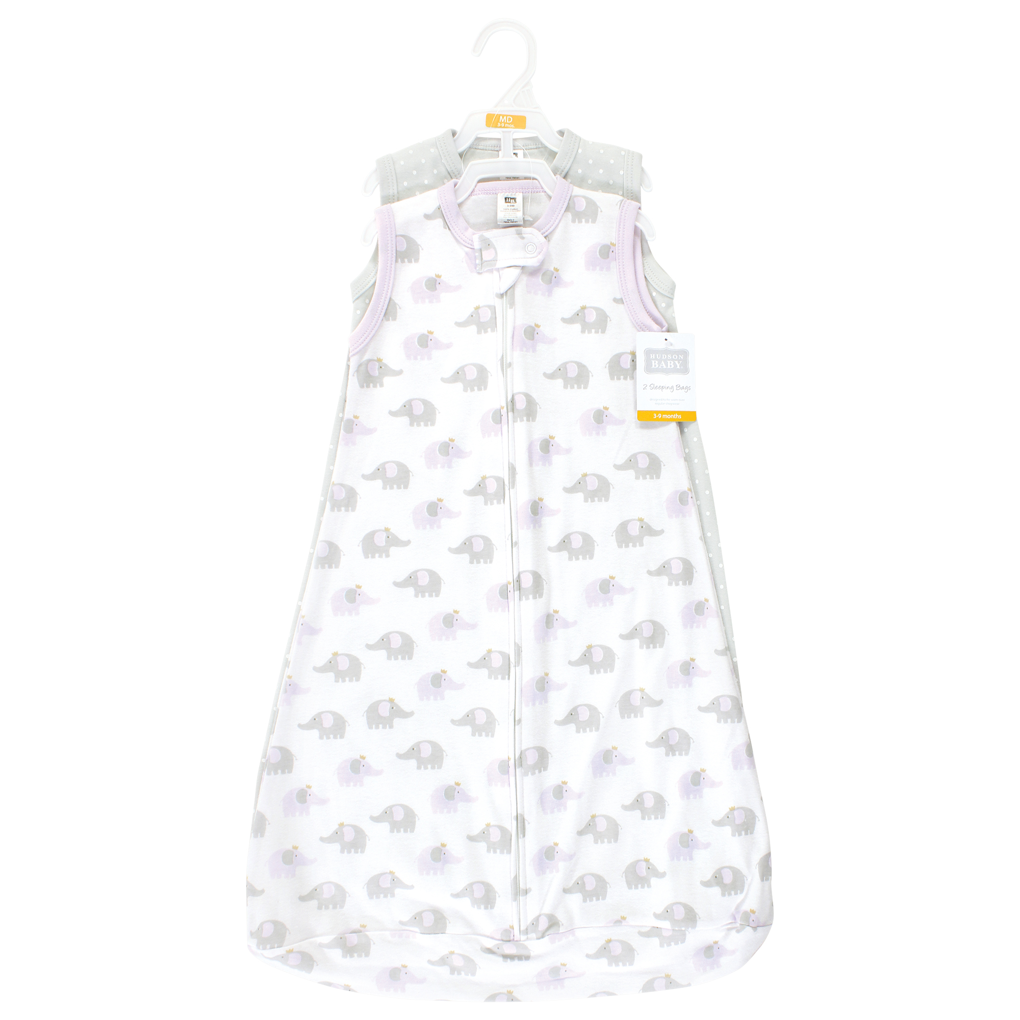 Hudson Baby Cotton Long-Sleeve Wearable Sleeping Bag, Sack, Blanket, Lilac Elephants Sleeveless