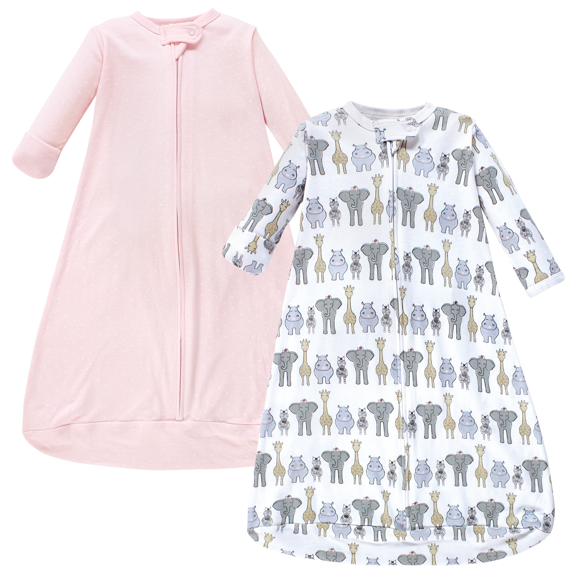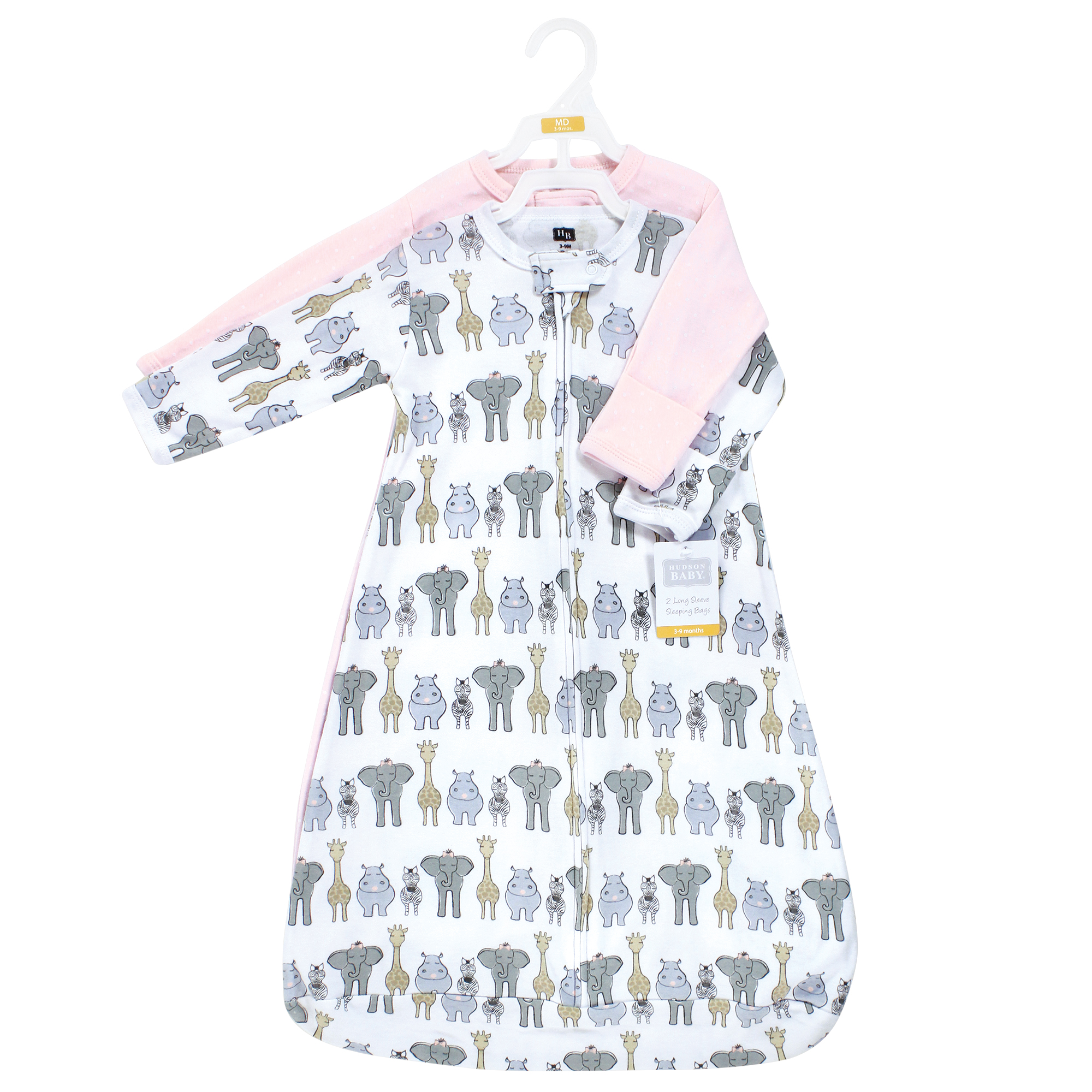 Hudson Baby Cotton Long-Sleeve Wearable Sleeping Bag, Sack, Blanket, Pink Safari