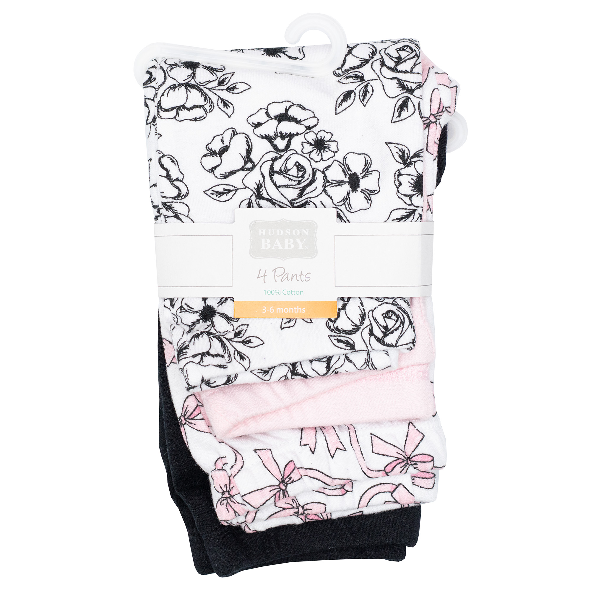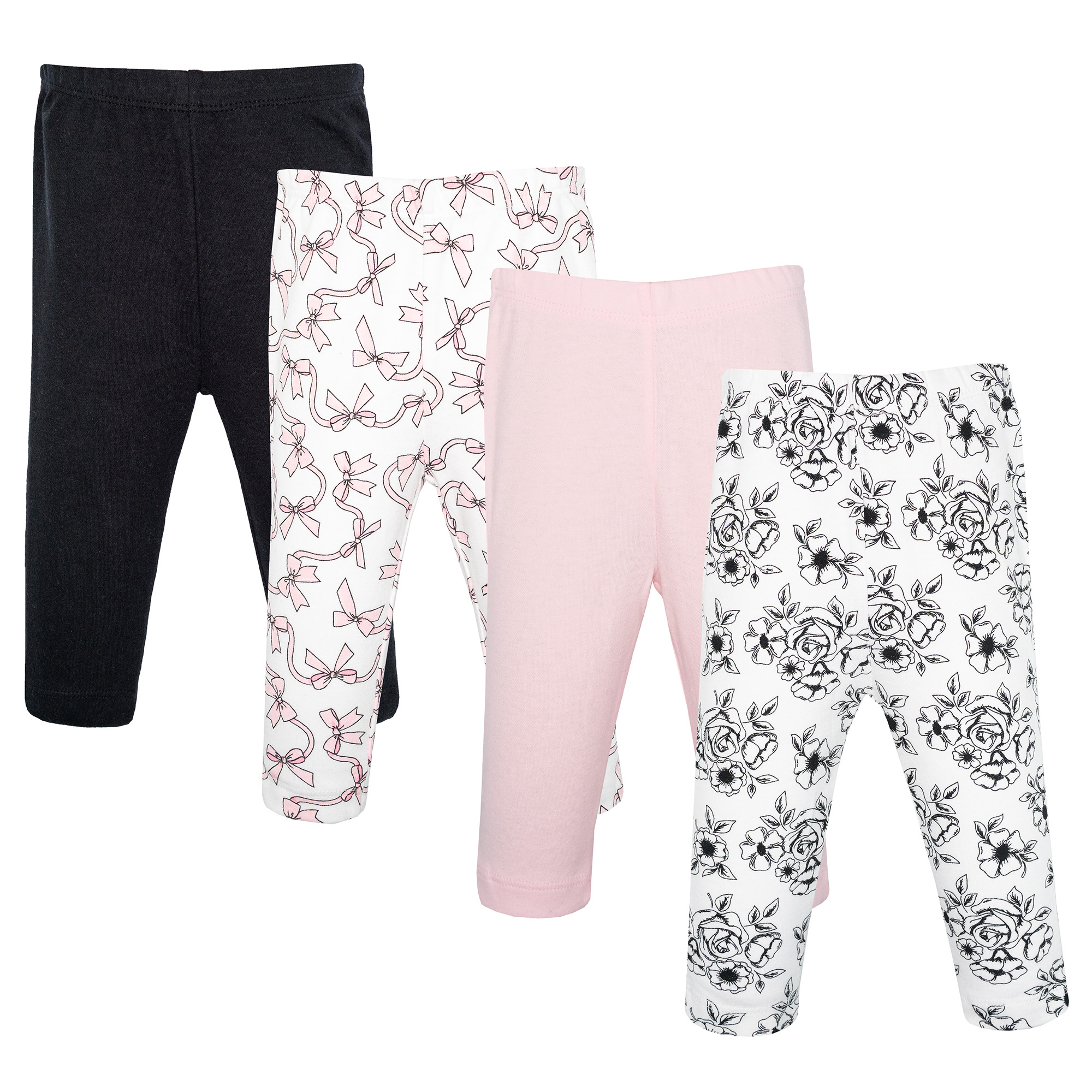 Hudson Baby Cotton Pants and Leggings, Black Toile Pink Bows