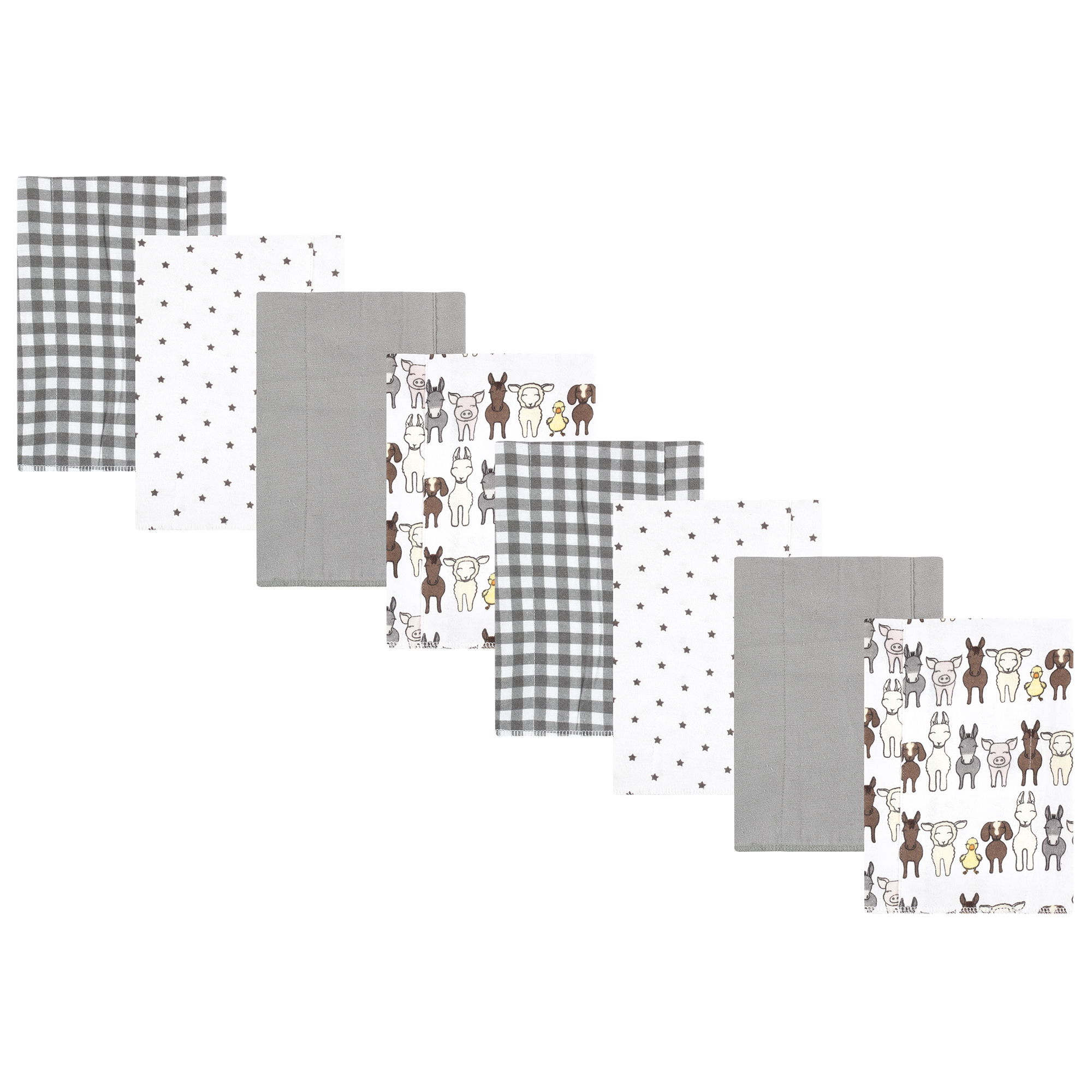 Our flannel burp cloths feature multiple layers of fabric to help clean up the messes and spills that you are bound to encounter with your new baby. Our burp cloths are soft and gentle when used on baby's skin and help protect parent's clothes from drool and spills while feeding, burping, and snuggling baby. Our burp cloths will come in handy everyday, whether you are hanging out at home, traveling, or leaving your little one at daycare.