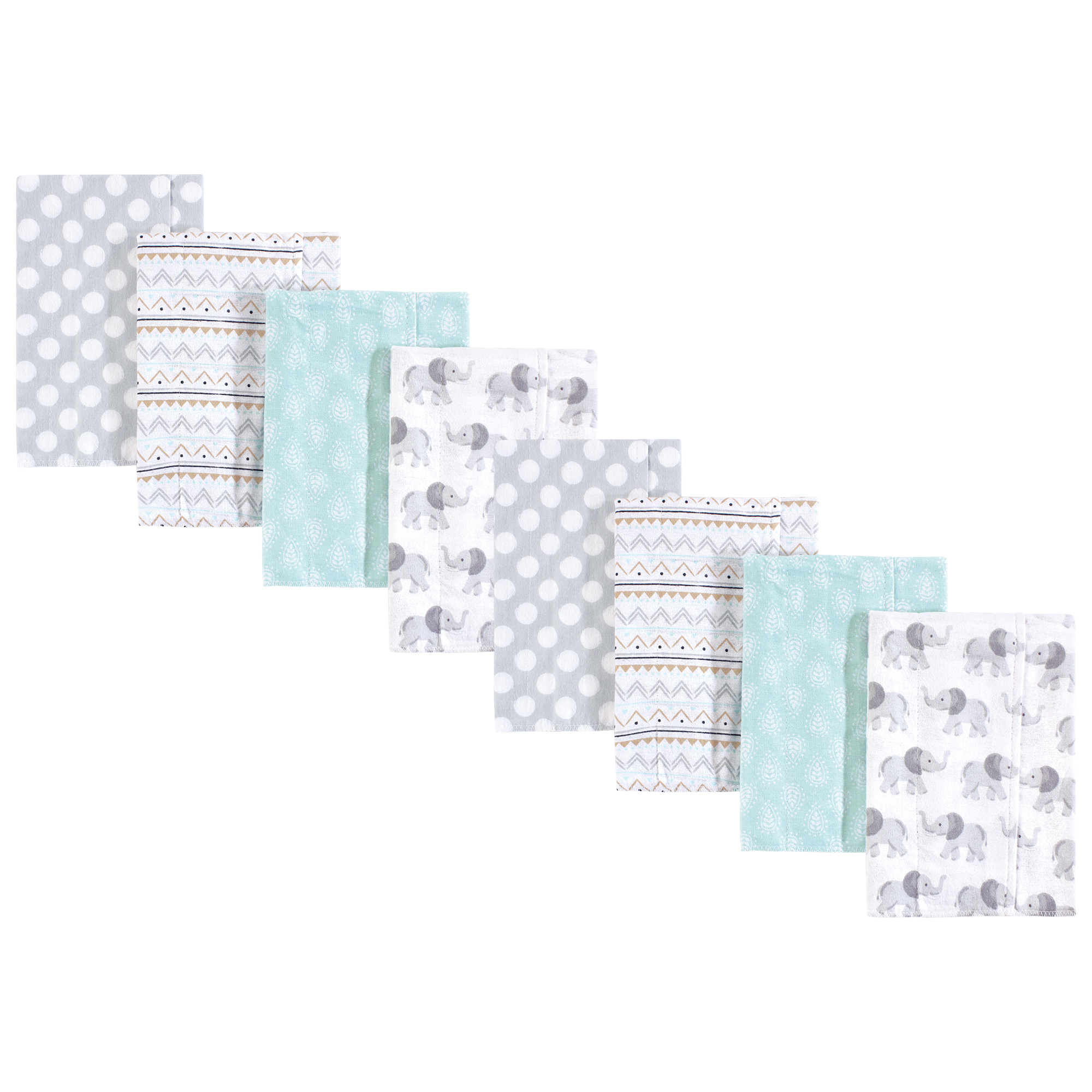Hudson Baby Cotton Poly Flannel Burp Cloths Multipack, Gray Elephant 8-Pack