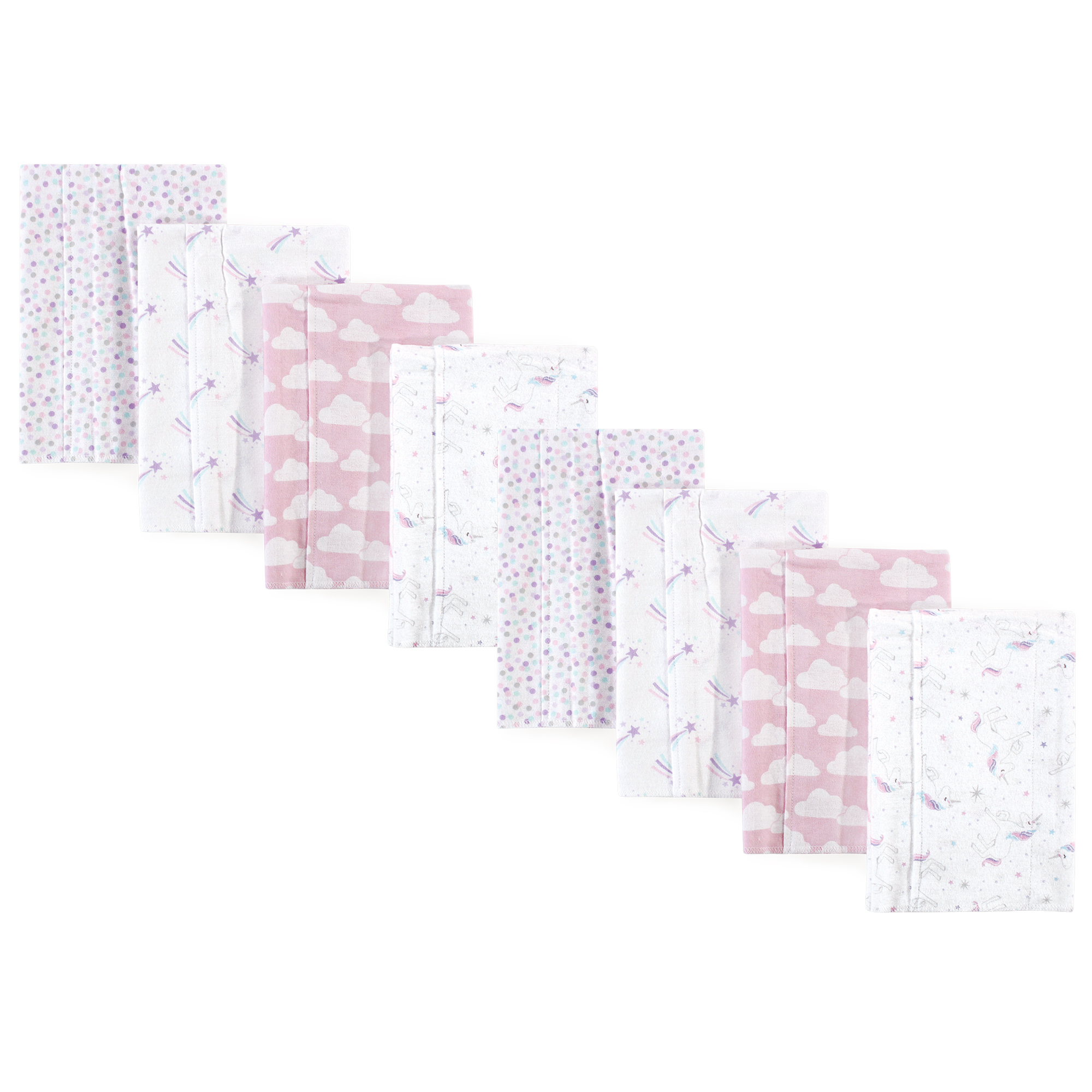 Hudson Baby Cotton Poly Flannel Burp Cloths Multipack, Magical Unicorn 8-Pack