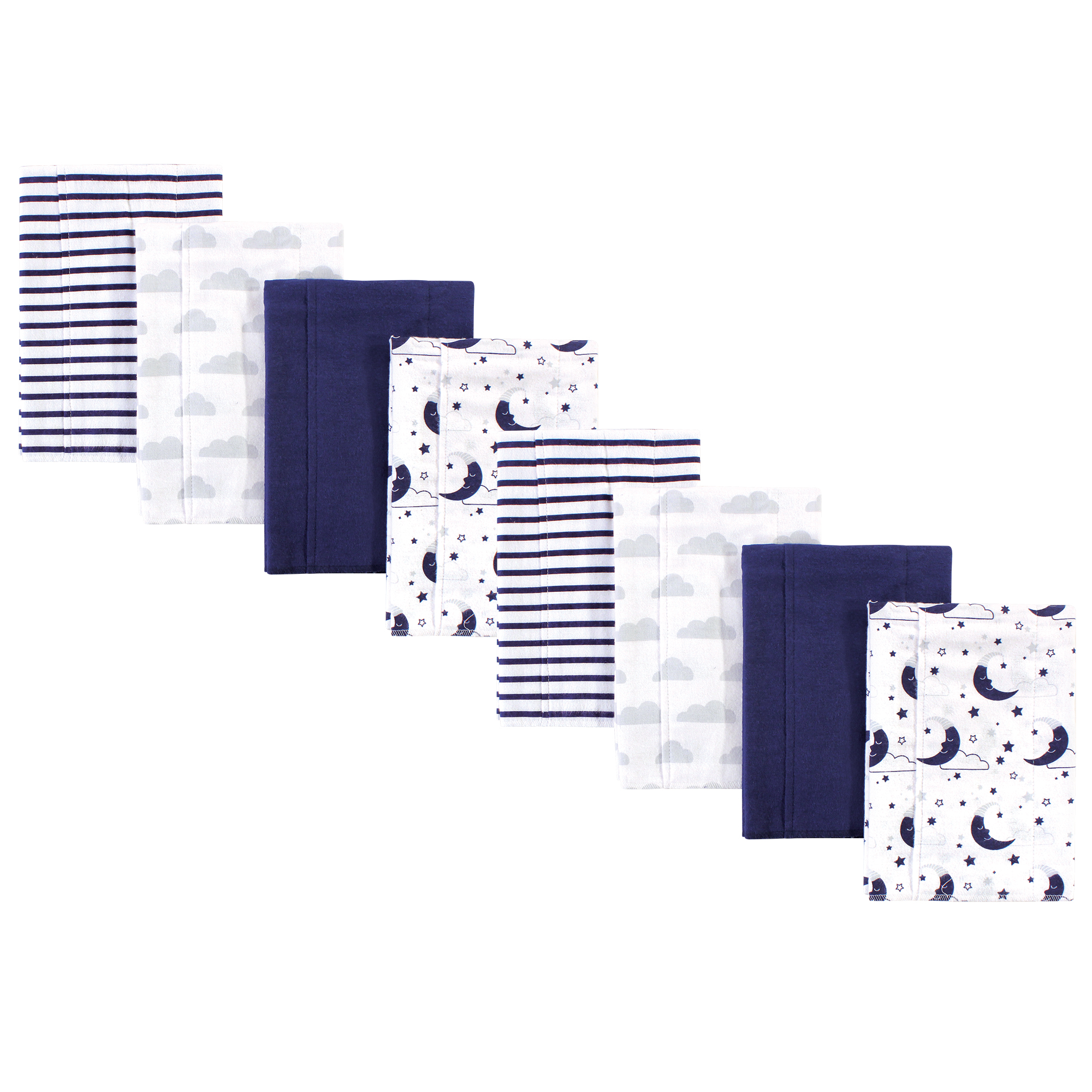Hudson Baby Cotton Poly Flannel Burp Cloths Multipack, Moon 8-Pack