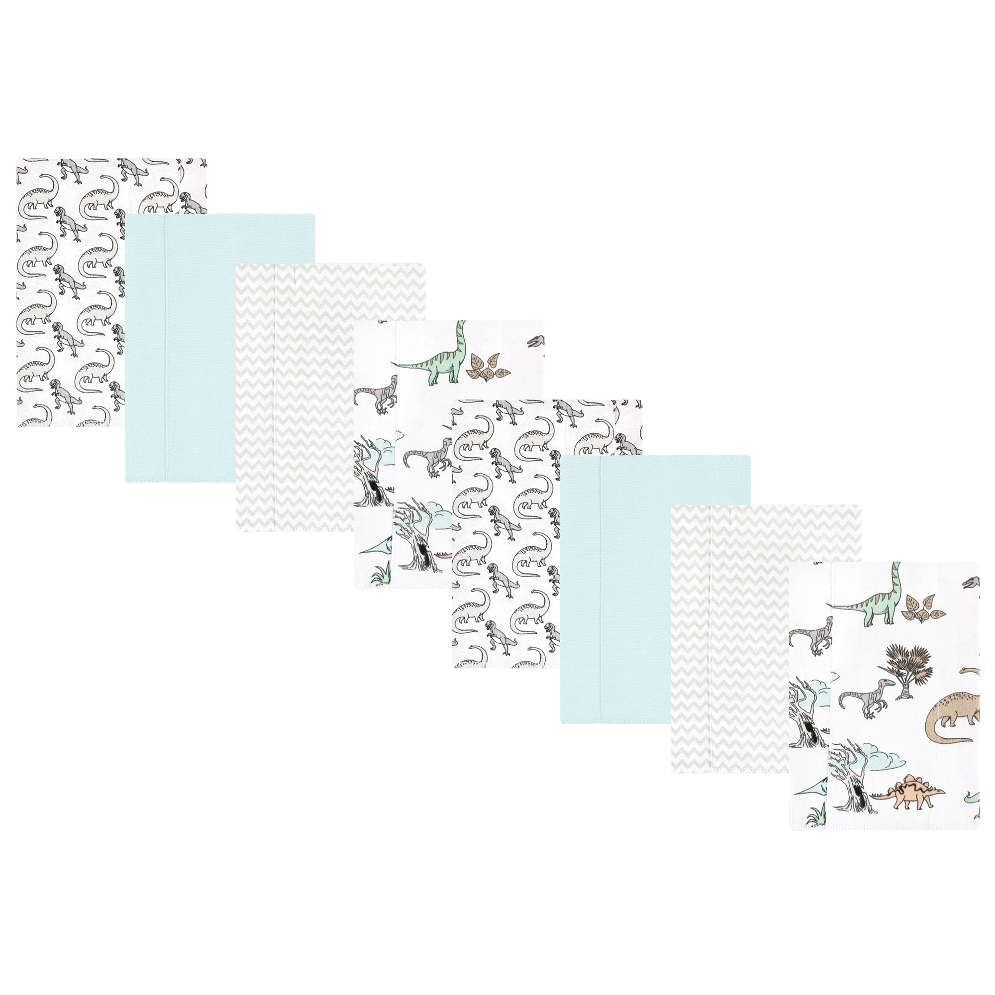 Hudson Baby Cotton Poly Flannel Burp Cloths Multipack, Neutral Dino World 8-Pack
