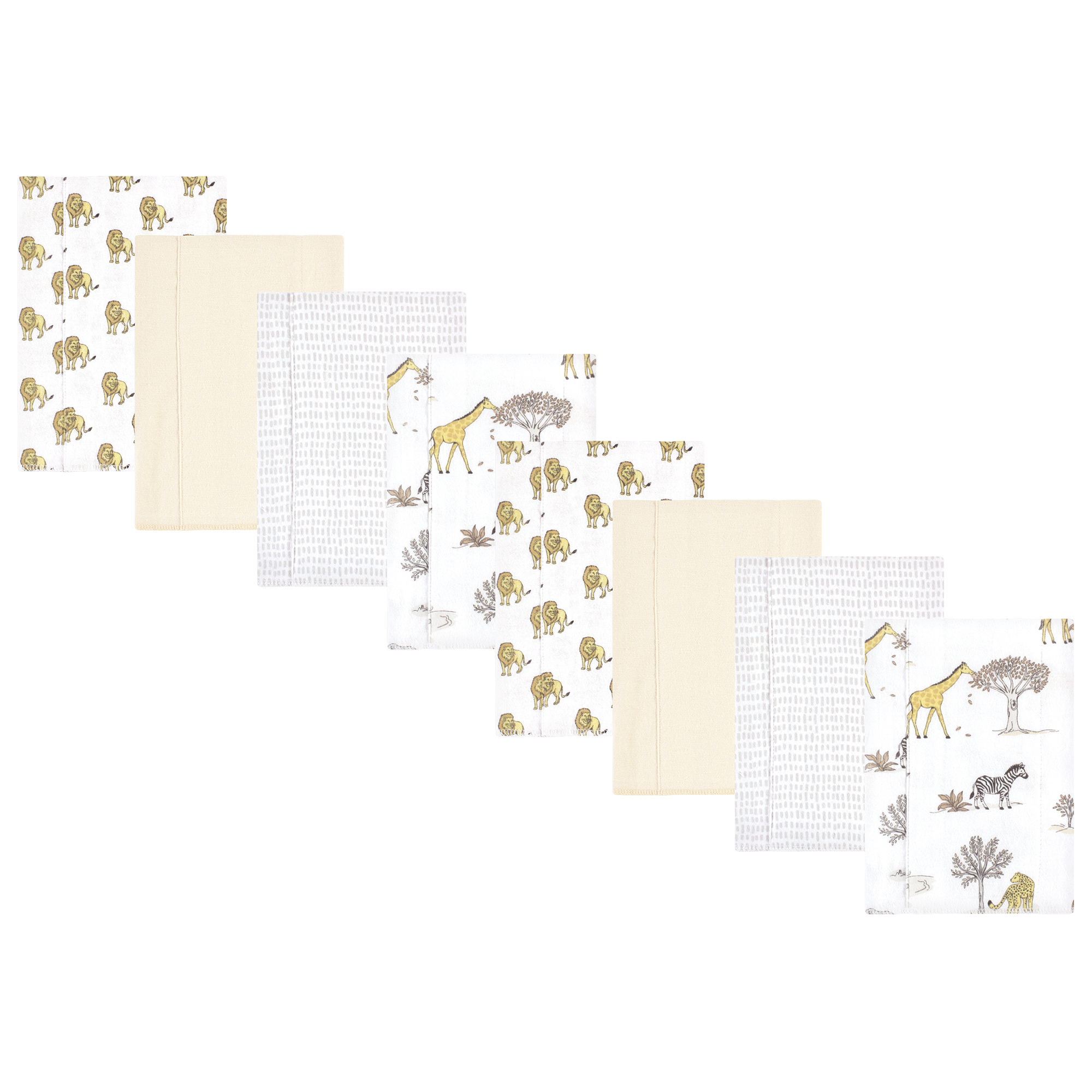 Hudson Baby Cotton Poly Flannel Burp Cloths Multipack, Neutral Safari World 8-Pack