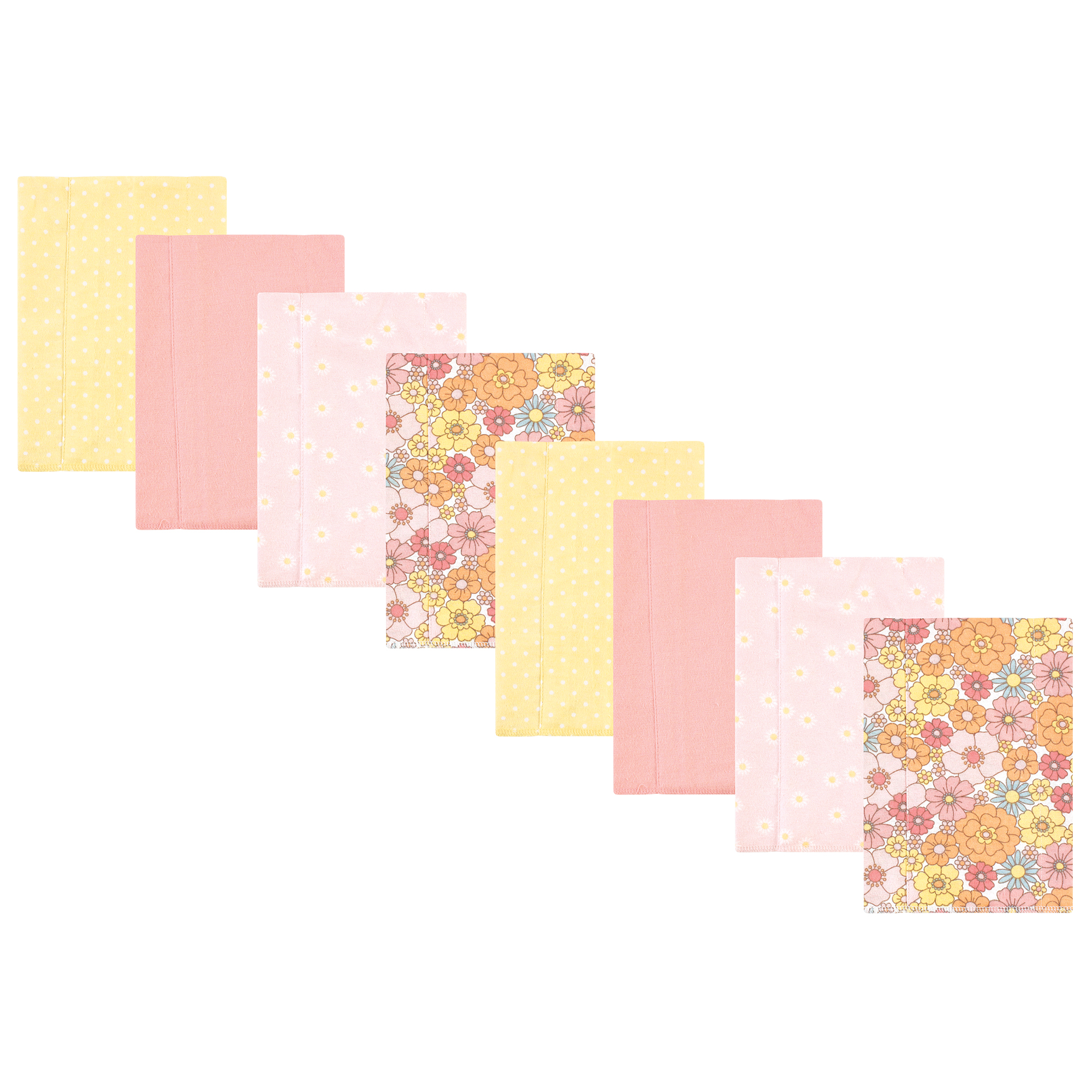 Hudson Baby Cotton Poly Flannel Burp Cloths Multipack, Peace Love Flowers 8-Pack