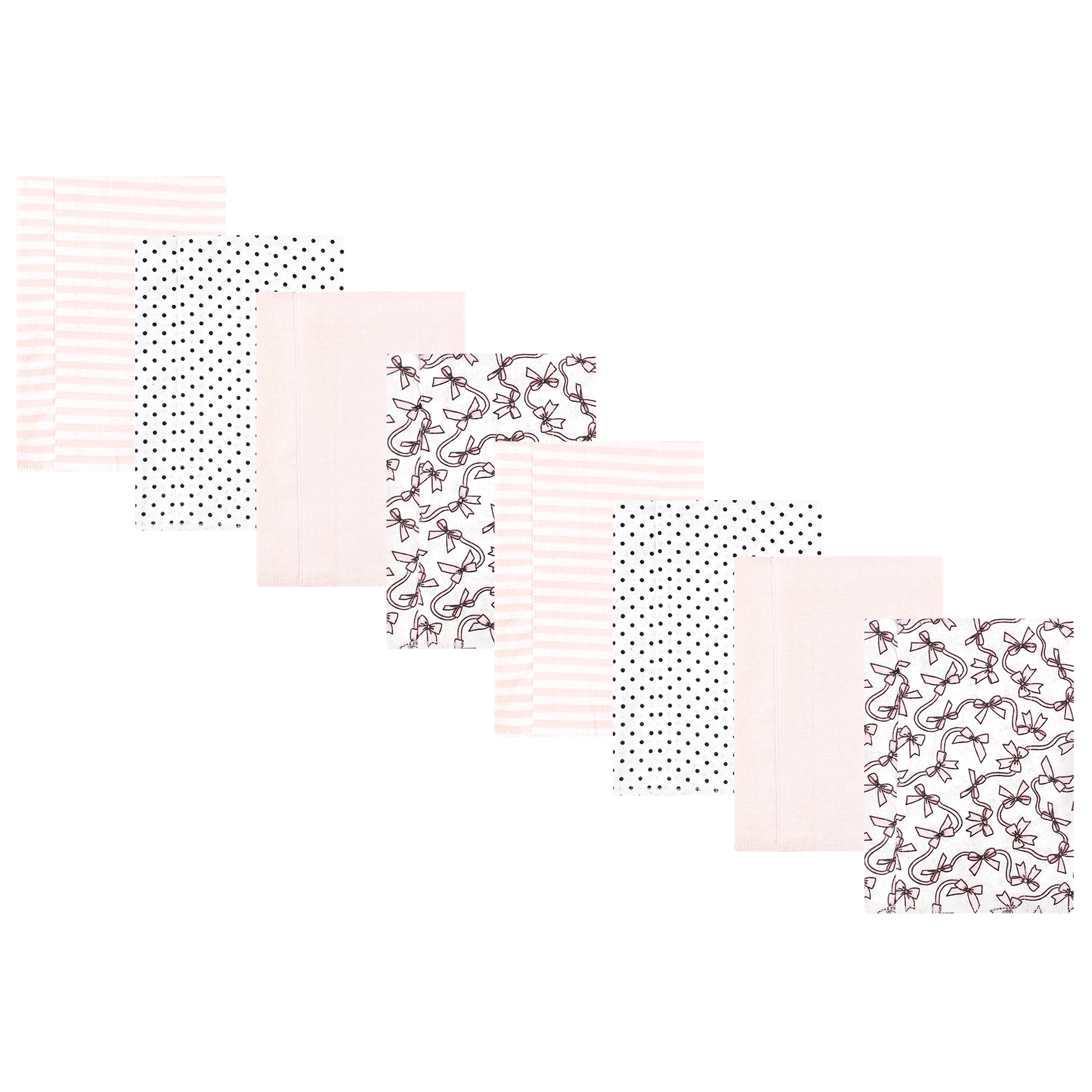 Hudson Baby Cotton Poly Flannel Burp Cloths Multipack, Pink Bows 8-Pack