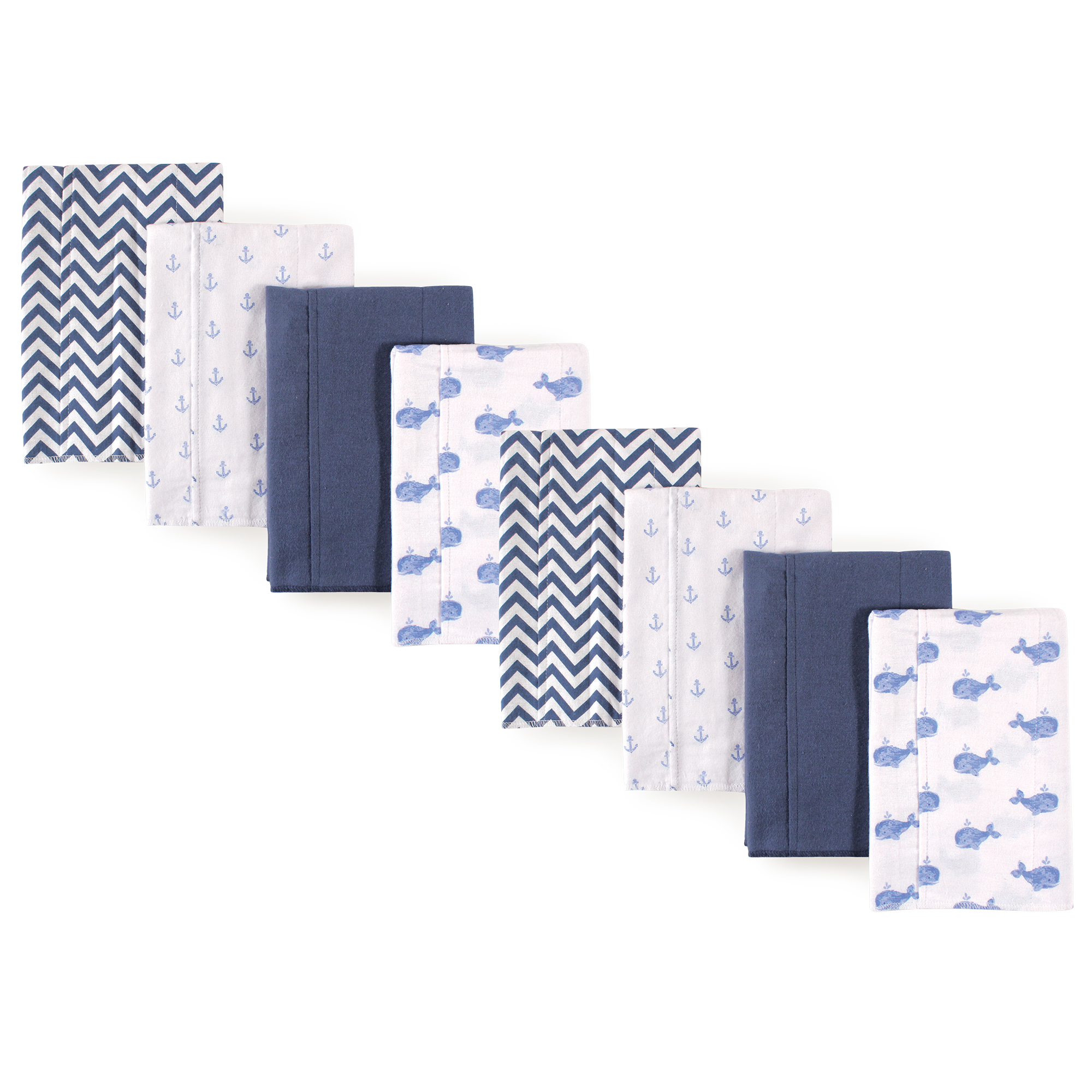 Hudson Baby Cotton Poly Flannel Burp Cloths Multipack, Whale 8-Pack