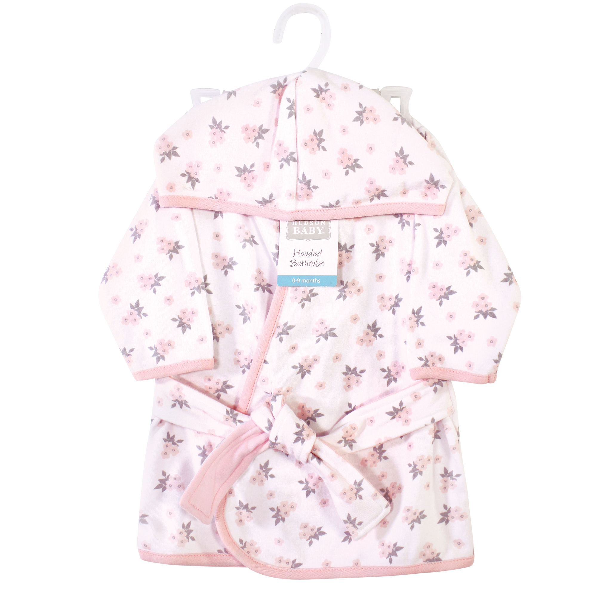 Hudson Baby Cotton Rich Bathrobe, Pink Gray Floral