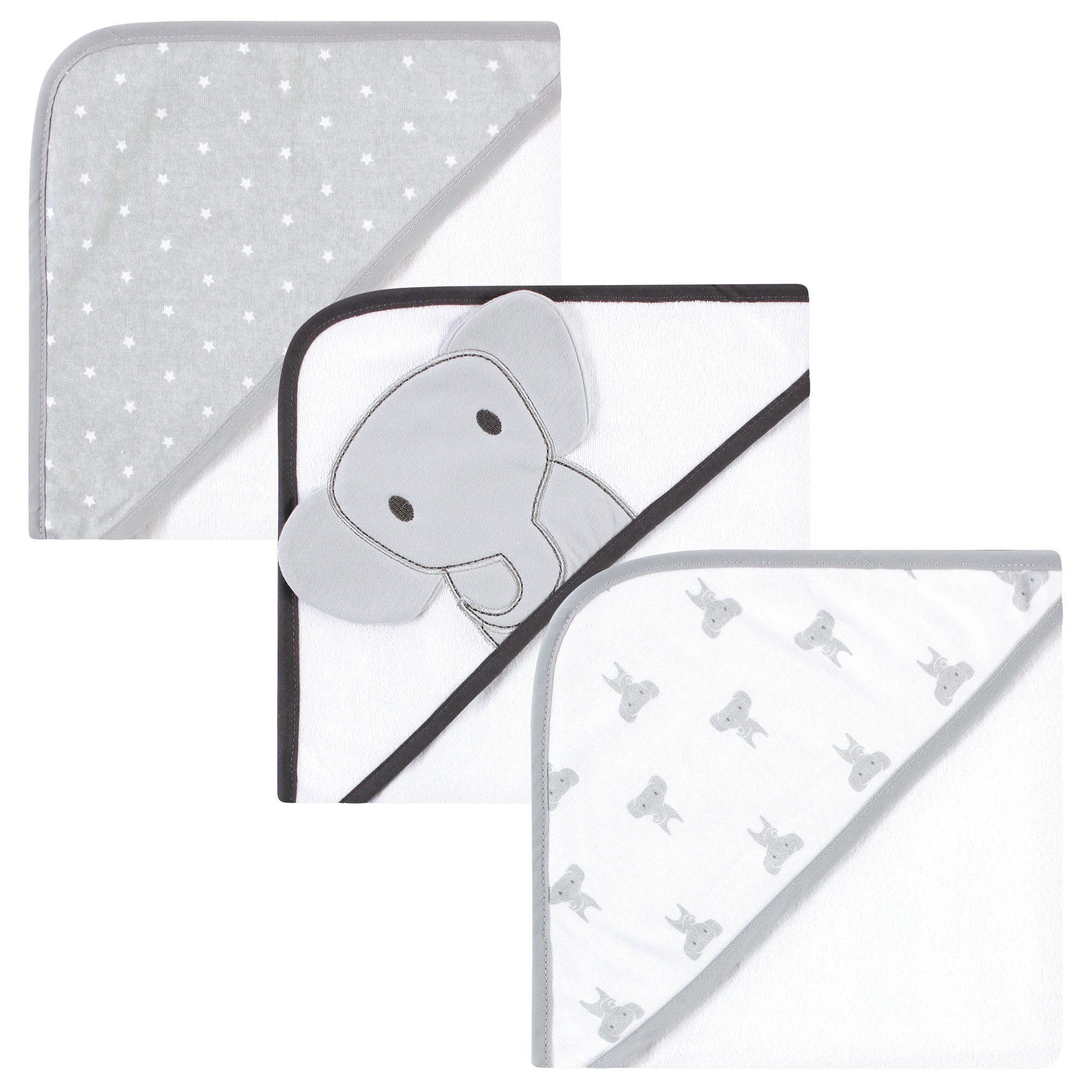 Hudson Baby Cotton Rich Hooded Towels, Gray Modern Elephant