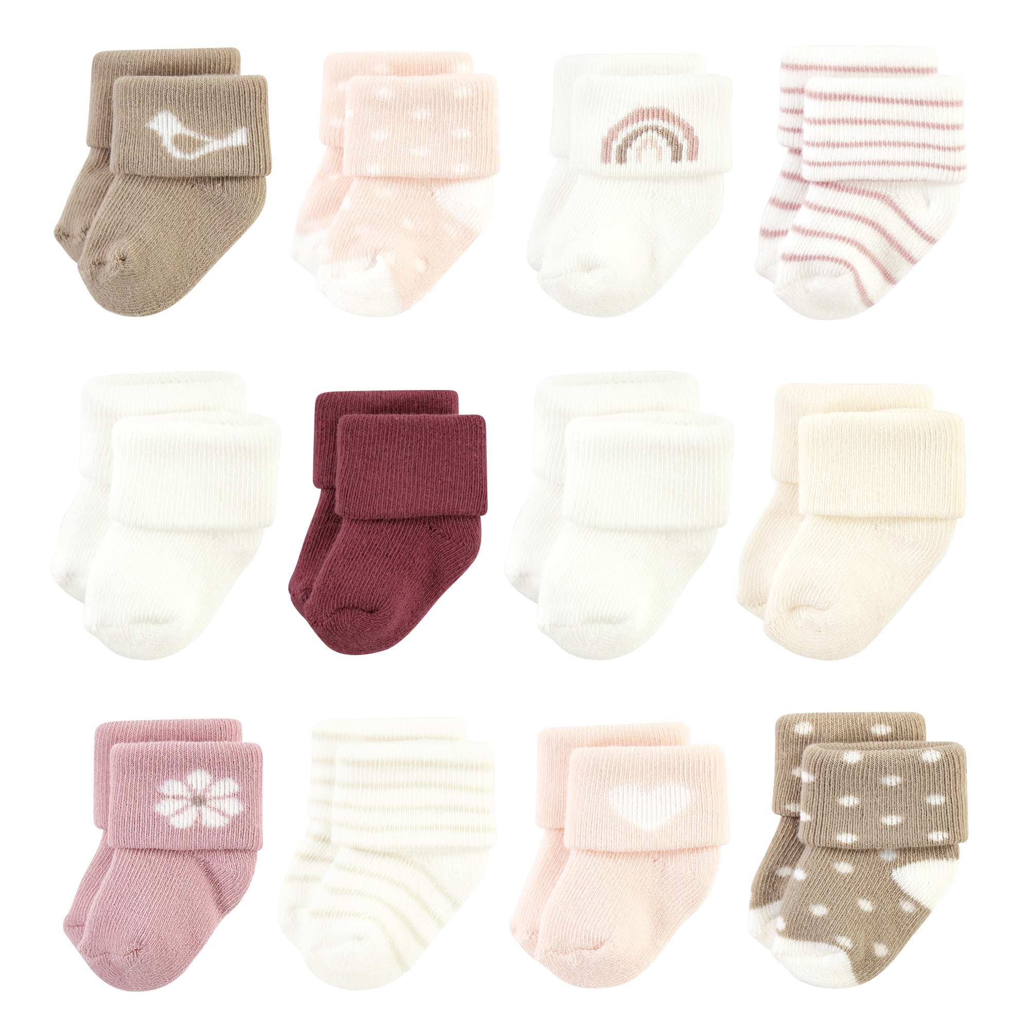 Hudson Baby Cotton Rich Newborn and Terry Socks, Blush Heart