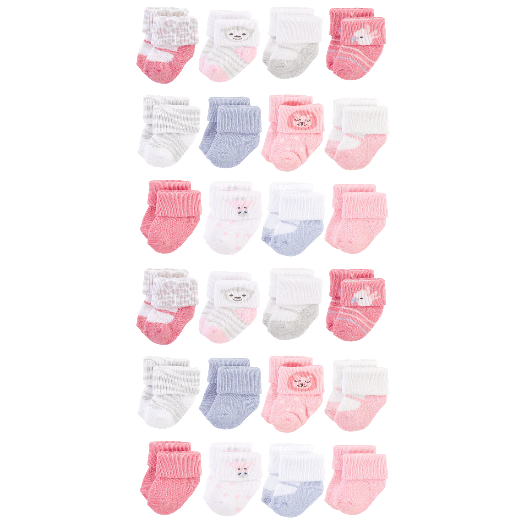 Hudson Baby Cotton Rich Newborn and Terry Socks, Girl Safari 1