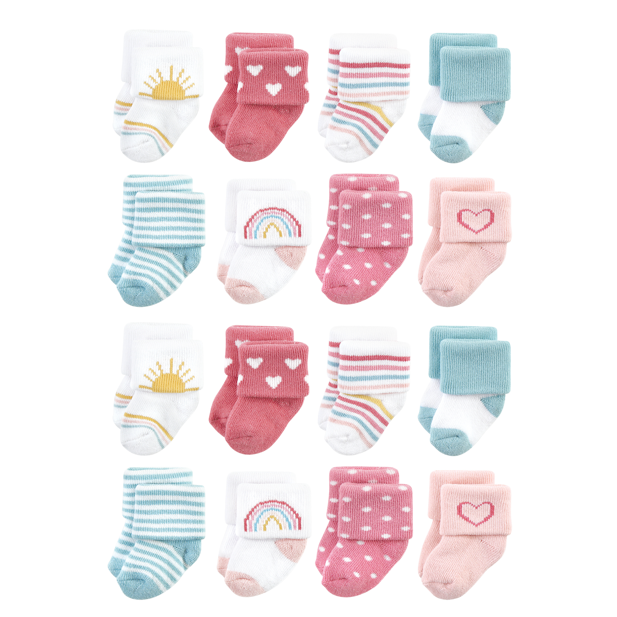 Hudson Baby Cotton Rich Newborn and Terry Socks, Modern Rainbow 1