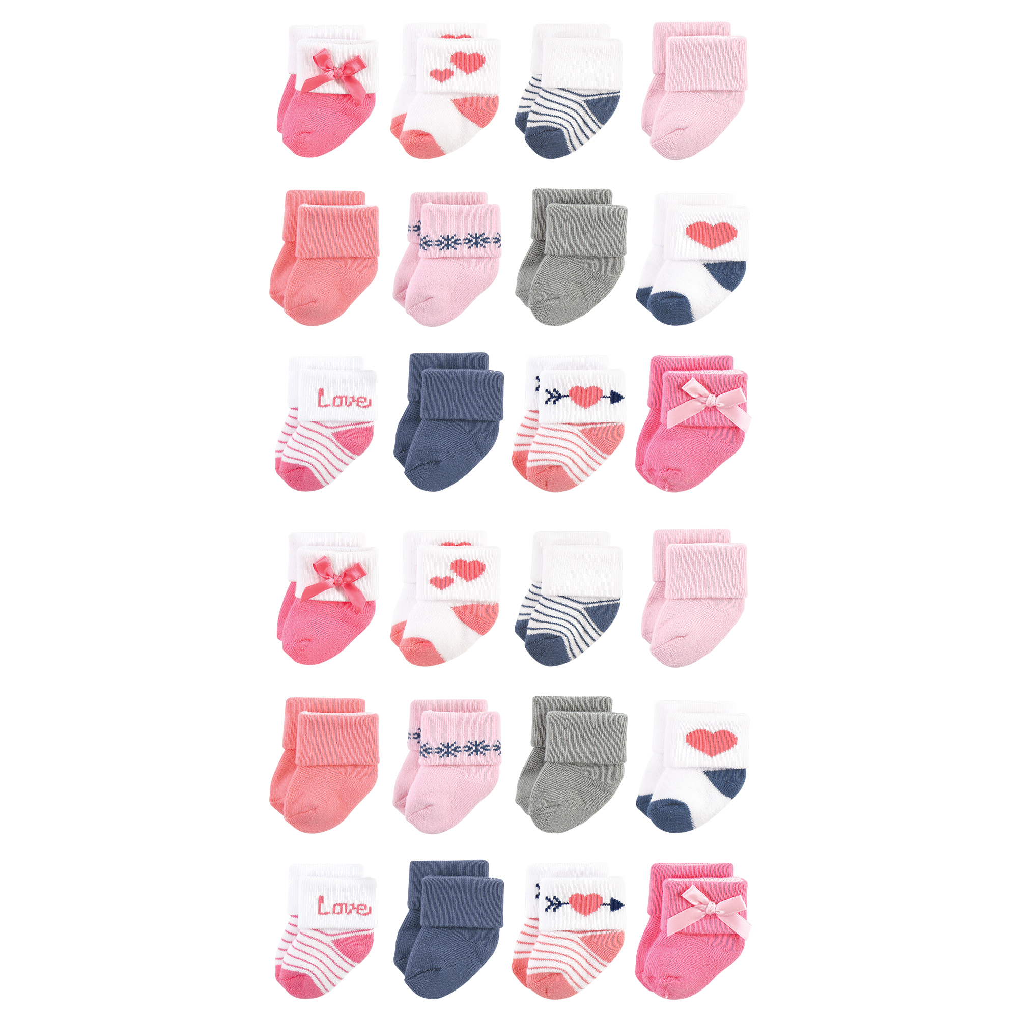 Hudson Baby Cotton Rich Newborn and Terry Socks, Pink Love 1