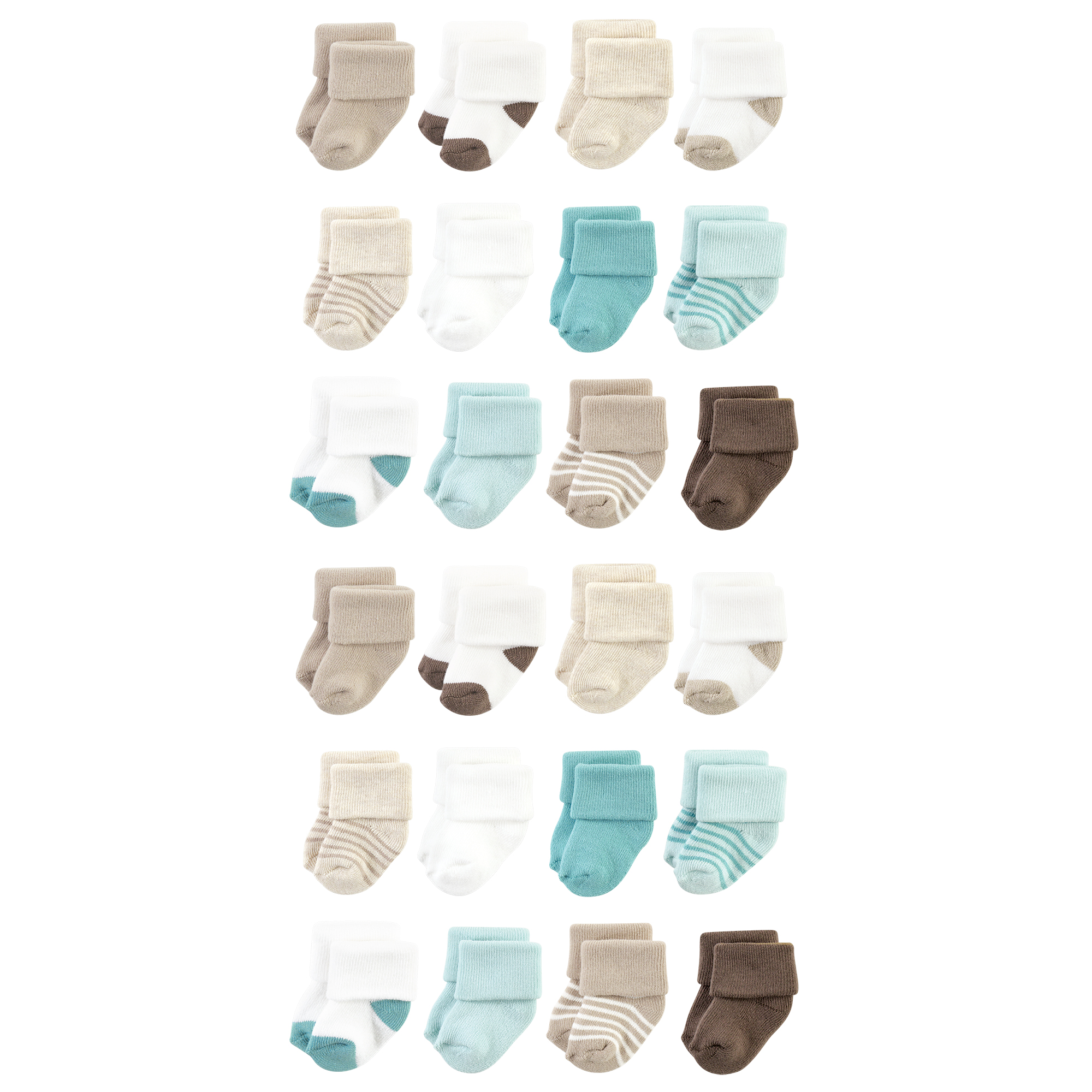 Hudson Baby Cotton Rich Newborn and Terry Socks, Teal Brown Stripe 1