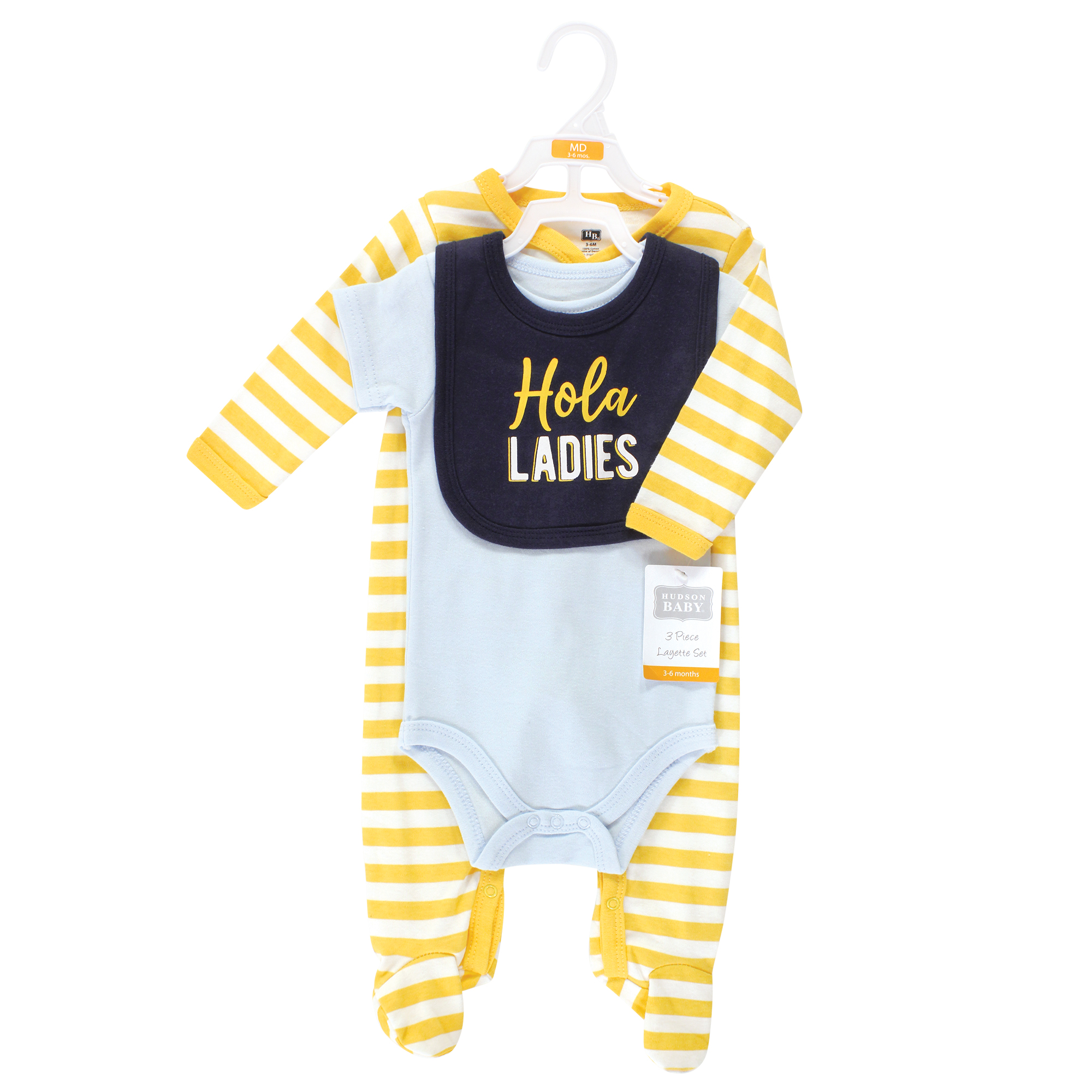 Hudson Baby sleep and play, bodysuit and bib is a great set to add to your baby's wardrobe. Our set be mixed and matched to make multiple adorable outfits. Made of super soft cotton, our clothing is comfortable and cozy for baby.