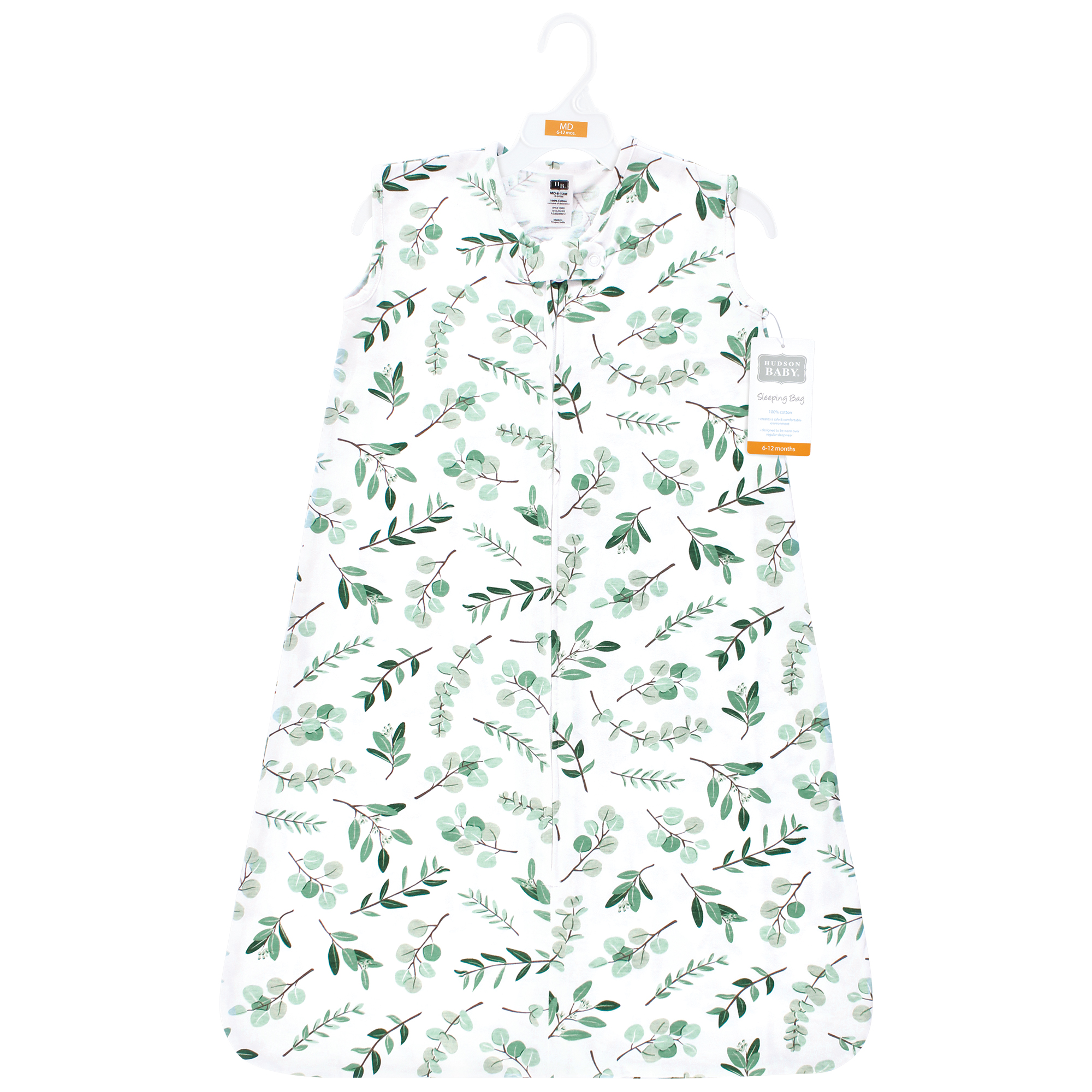 Hudson Baby Cotton Sleeveless Wearable Sleeping Bag, Sack, Blanket, Eucalyptus