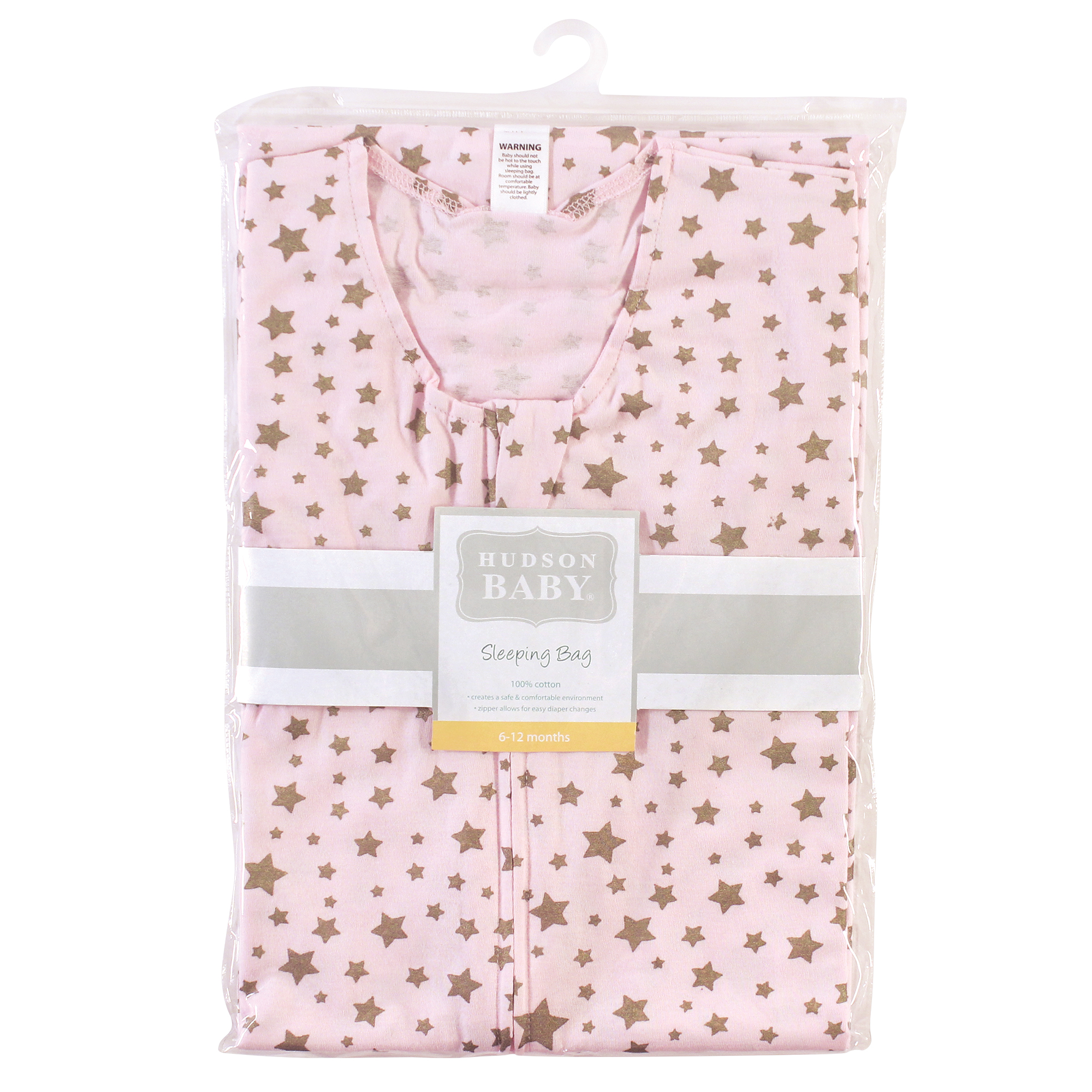 Hudson Baby Cotton Sleeveless Wearable Sleeping Bag, Sack, Blanket, Gold Pink Star