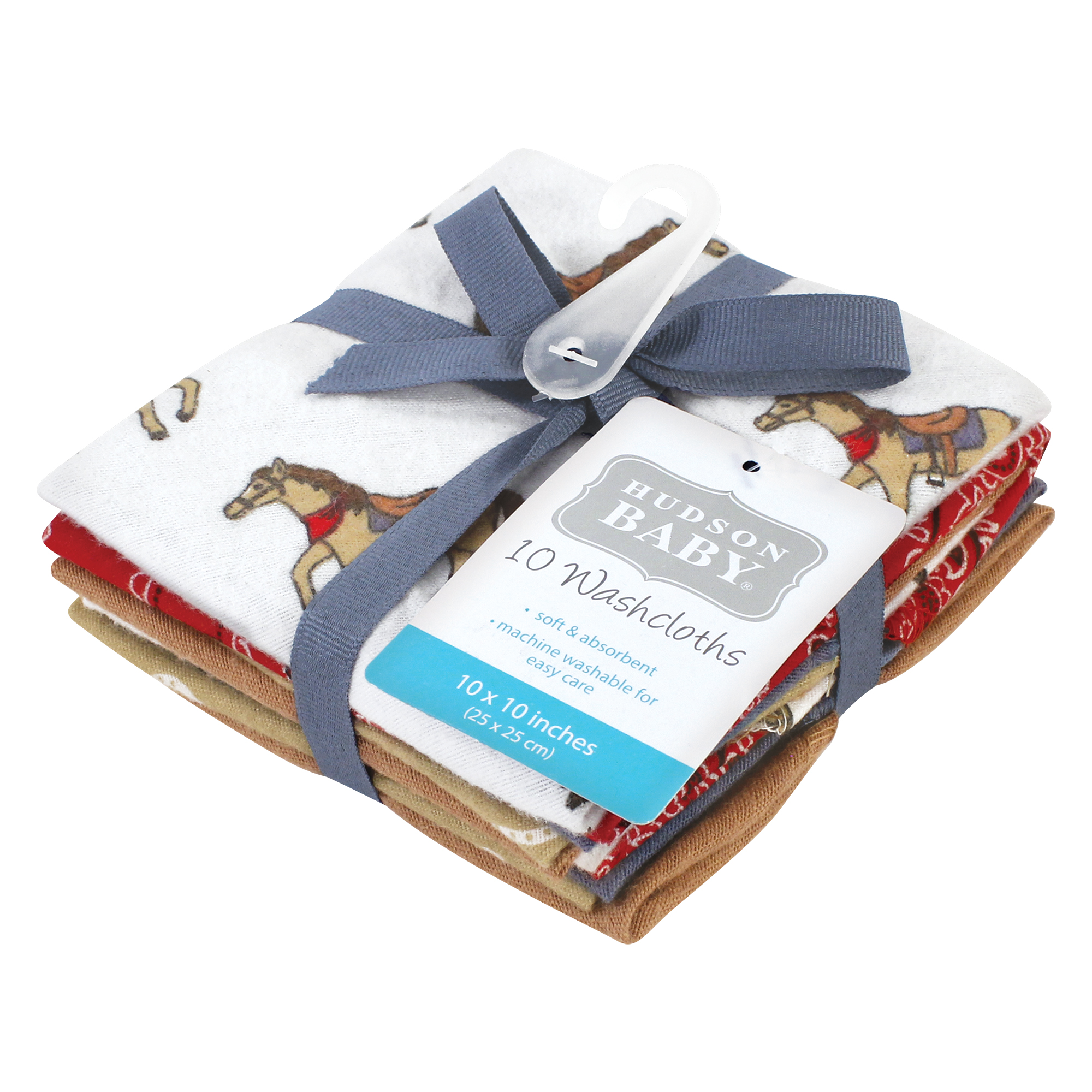 Hudson Baby Flannel Cotton Washcloths, Cowboy 10 Pack