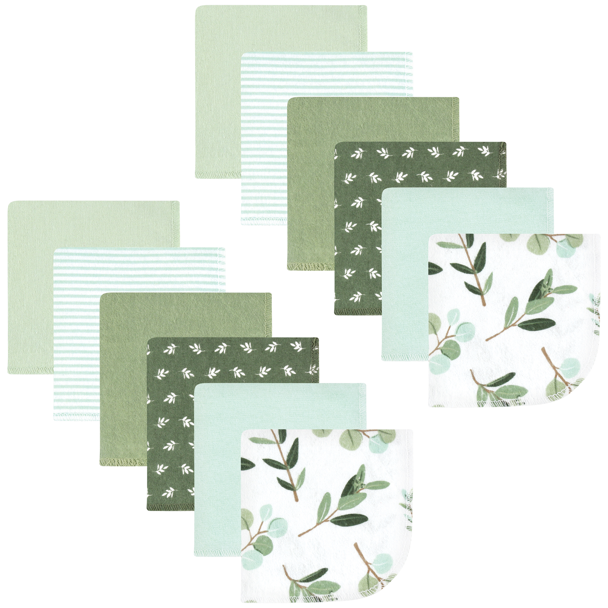 Hudson Baby Flannel Cotton Washcloths, Eucalyptus 12Pk