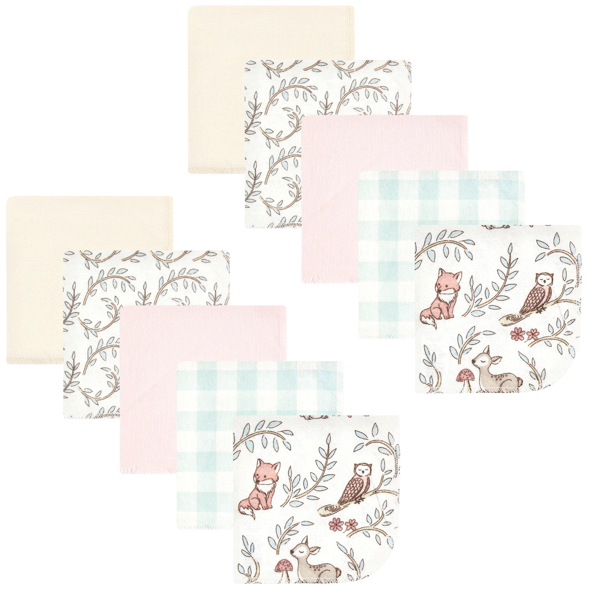 Hudson Baby Flannel Cotton Washcloths, Girl Woodland Pals 10Pk