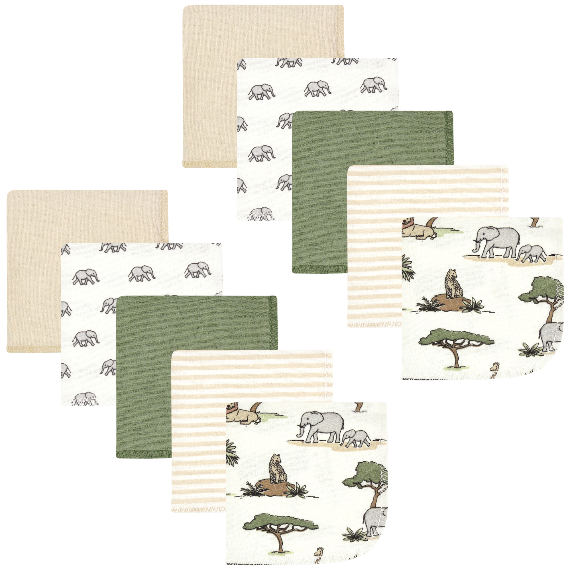 Hudson Baby Flannel Cotton Washcloths, Going On Safari 10Pk
