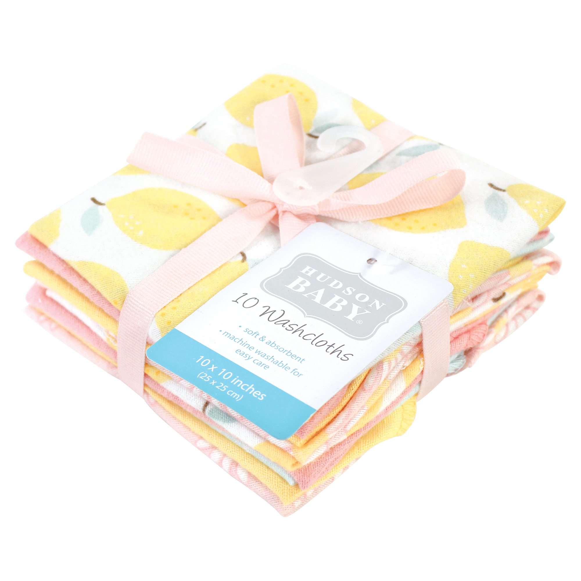 Hudson Baby Flannel Cotton Washcloths, Lemon Daisy 10 Pack