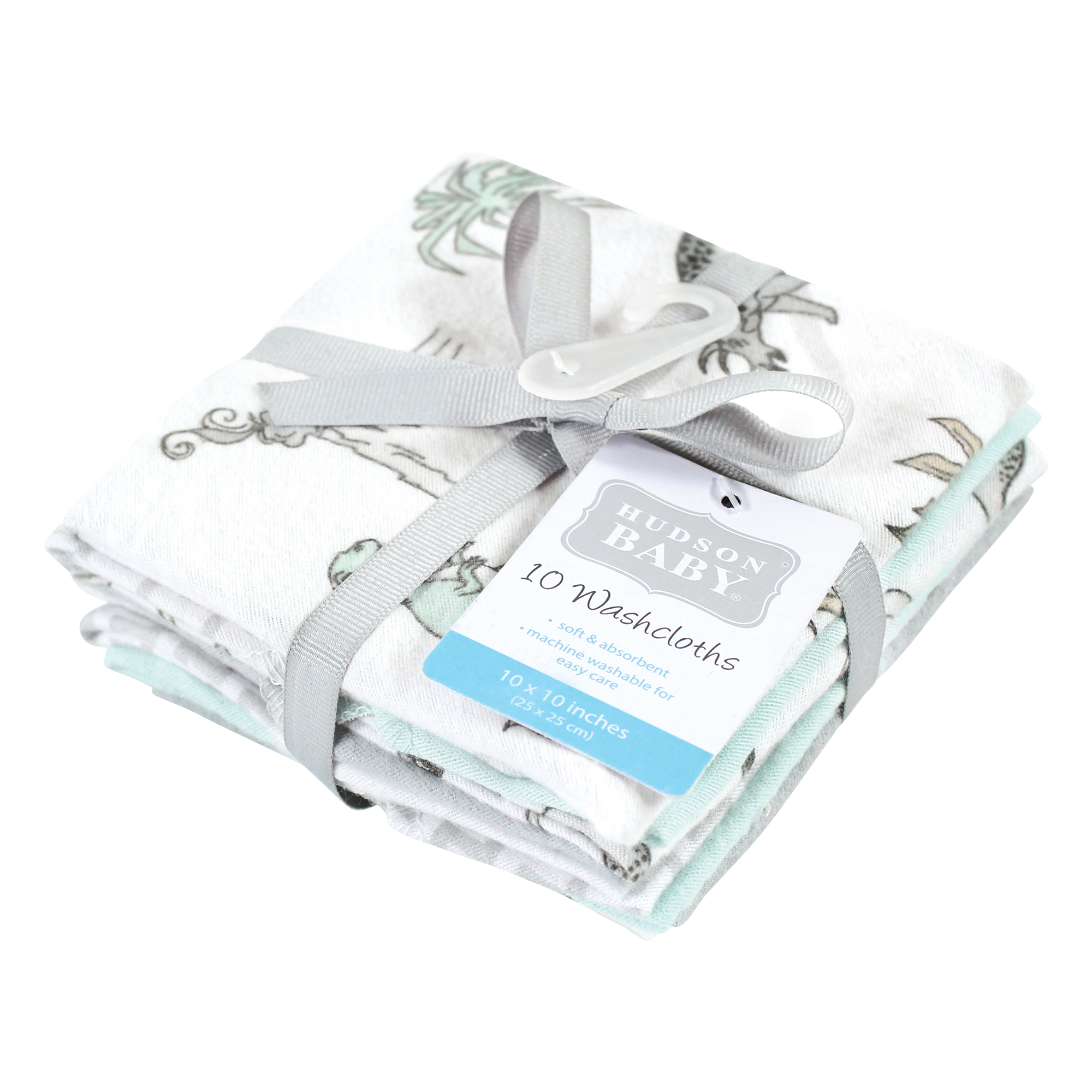Hudson Baby Flannel Cotton Washcloths, Neutral Dino World 10-Pack