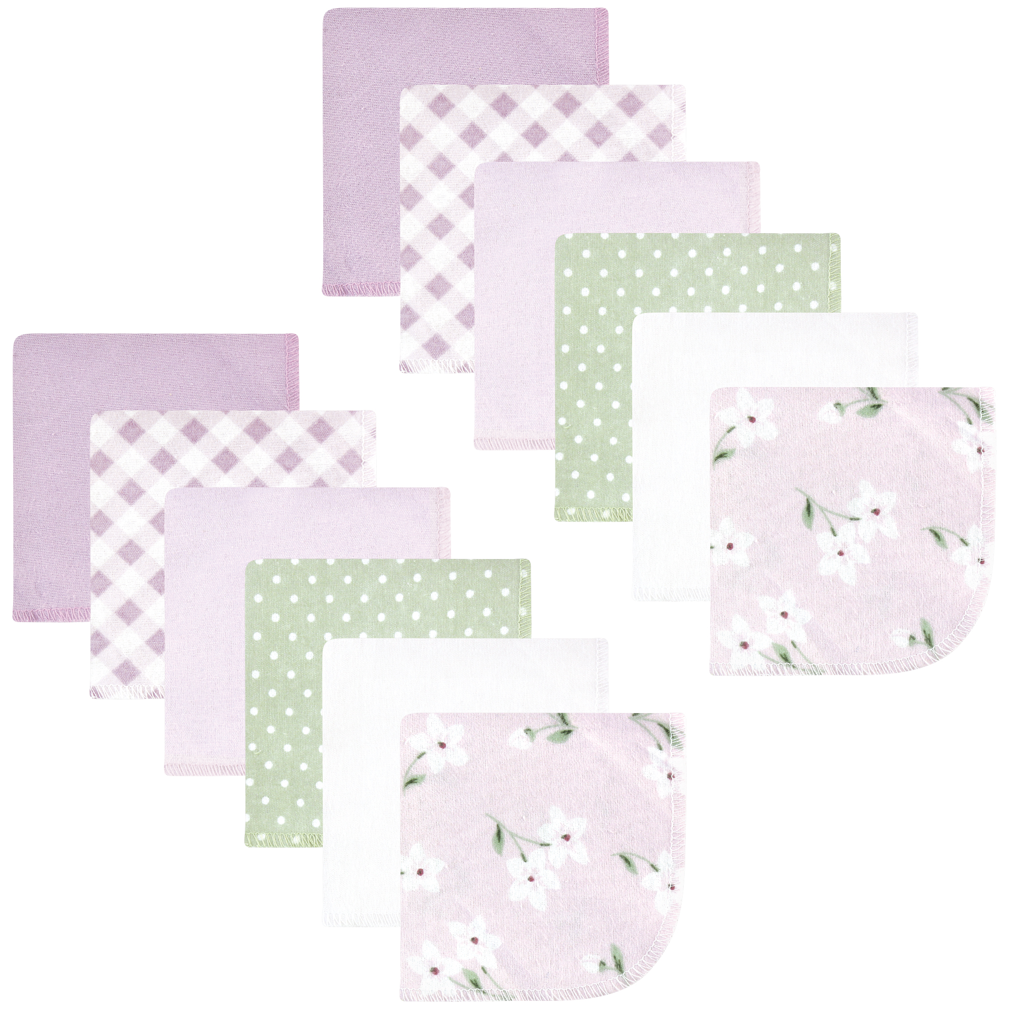 Hudson Baby Flannel Cotton Washcloths, Purple Dainty Floral 12 Pack