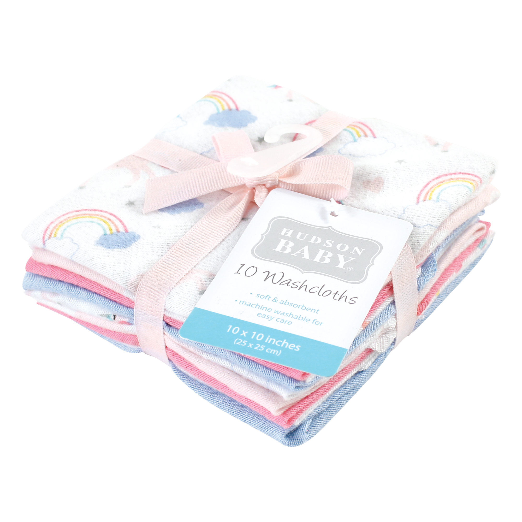 Hudson Baby flannel washcloths offer a great value pack of baby washcloths. Our washcloths are made with 100% flannel cotton and great for feeding and burping. Our multi-purpose cloths are also convenient for life's unexpected messes and spills. Our value pack is perfect for parents looking for a bundle of washcloths at an affordable value.