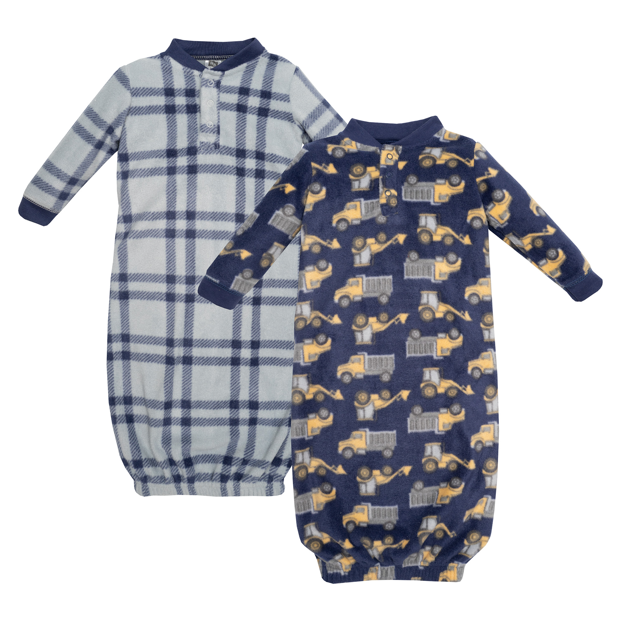 Hudson Baby fleece gowns feature playful patterns for sweet dreams. Our cozy fleece fabric is super-soft and gentle on baby's skin, making sleep time comfortable. The elastic band at the bottom and a lap neck make dressing and diaper changes a breeze.