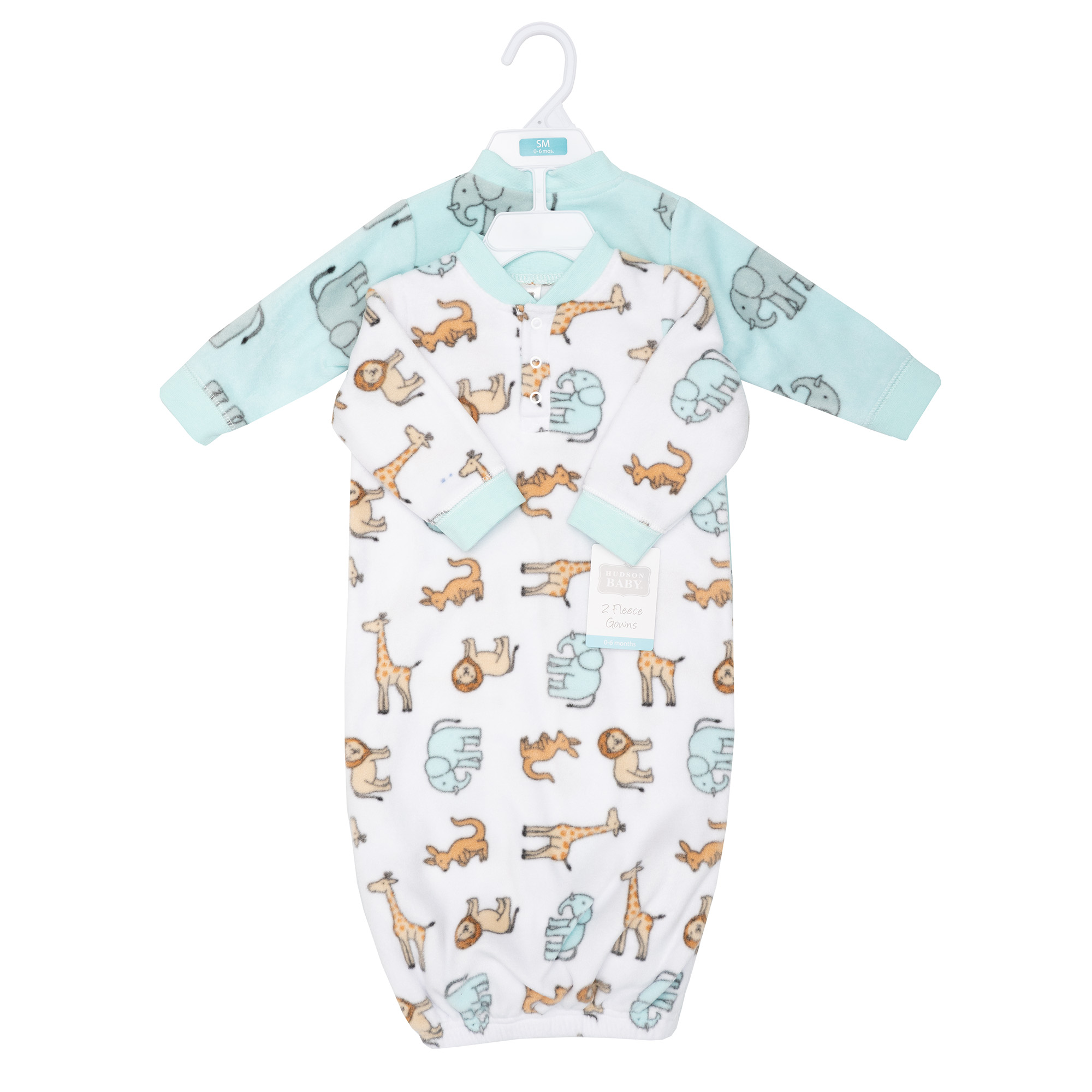 Hudson Baby fleece gowns feature playful patterns for sweet dreams. Our cozy fleece fabric is super-soft and gentle on baby's skin, making sleep time comfortable. The elastic band at the bottom and a lap neck make dressing and diaper changes a breeze.