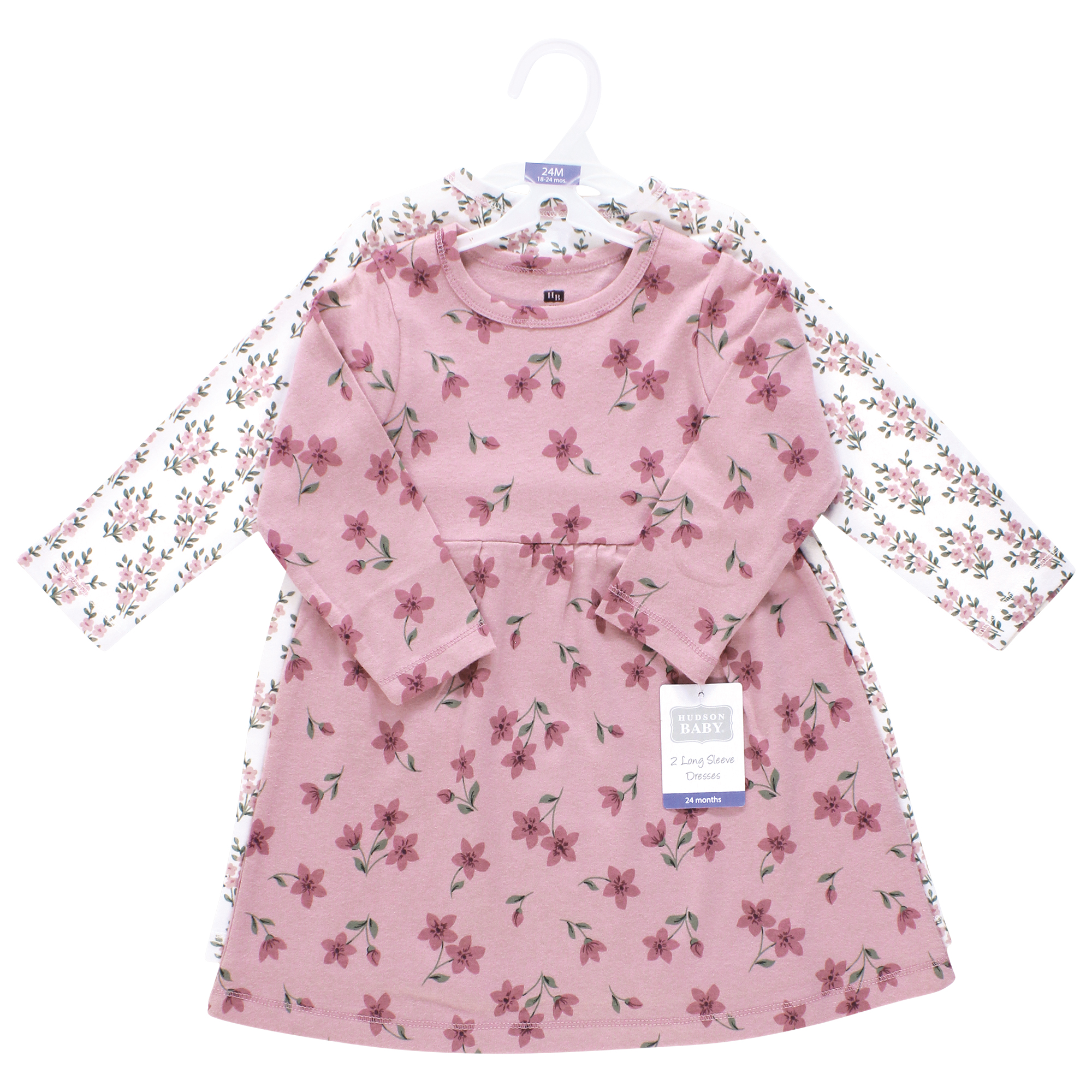 Hudson Baby Girls Cotton Dresses 2-Pack, Plum Wildflower