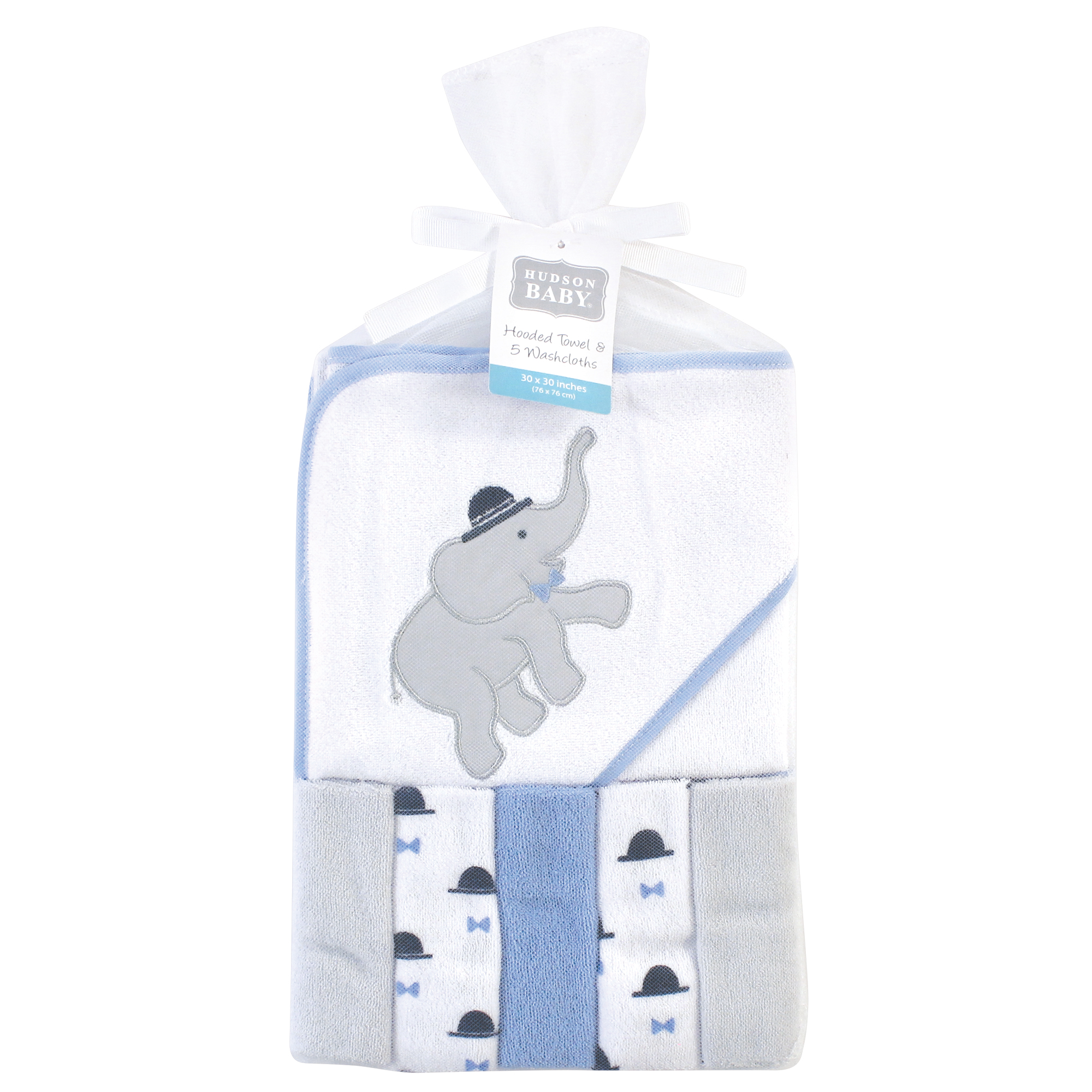 Hudson Baby Hooded Towel and Five Washcloths, Handsome Elephant